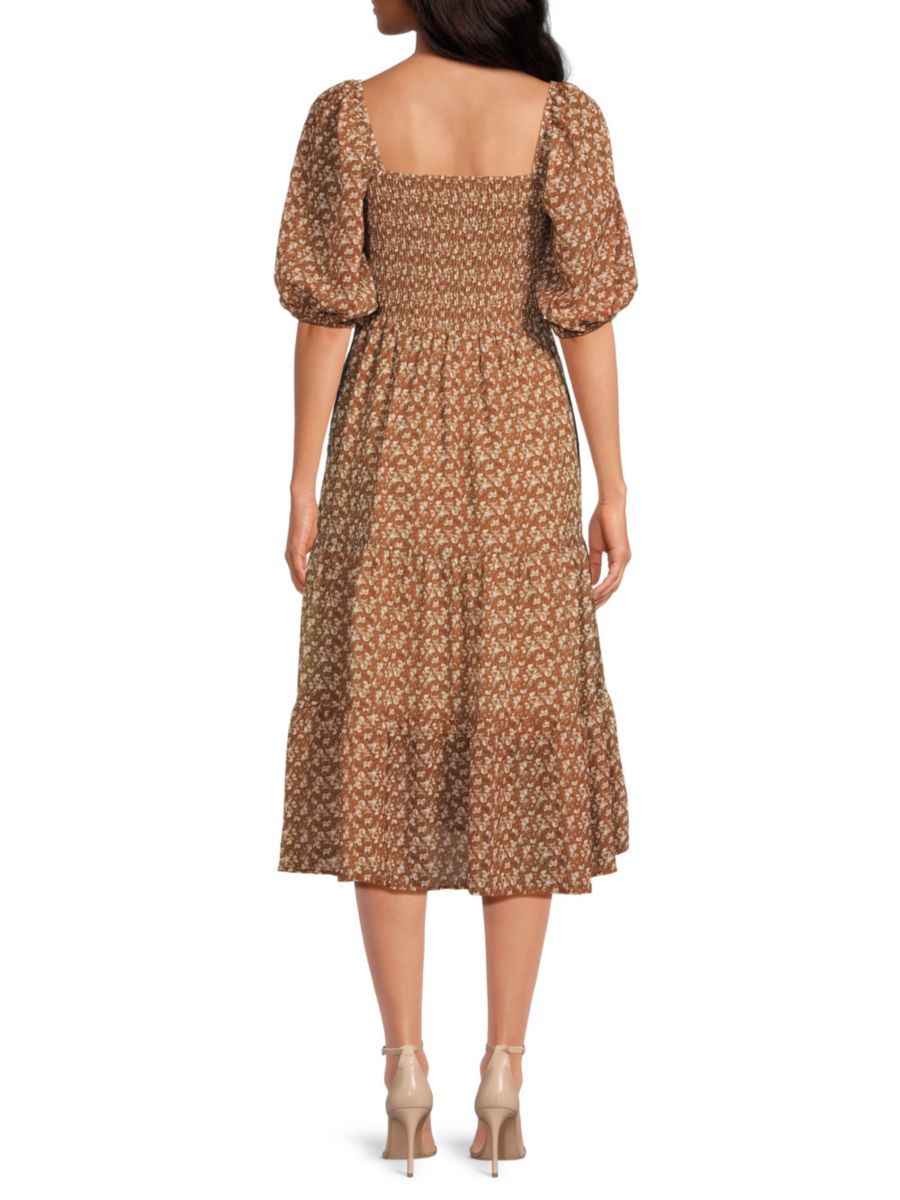 Платье миди с принтом Hera от Opt сочетает в себе присборенный квадратный вырез и расклешенный крой. Мягкая ткань и рукава-буфы придают ему женственное очарование.