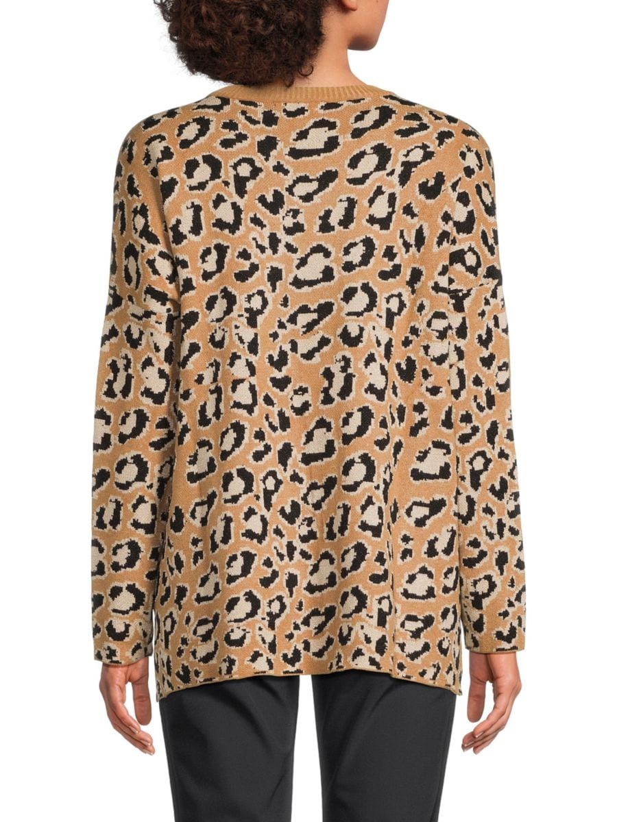 Этот свитер с леопардовым принтом от Joseph A имеет классический круглый вырез горловины, спущенные плечи и длинные рукава для непринужденного силуэта.