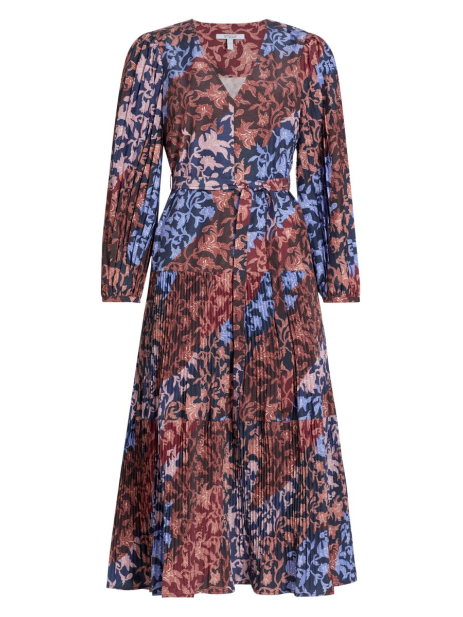 Платье миди Ferris от Derek Lam 10 Crosby's Ferris со складками украшено замысловатым цветочным мотивом.