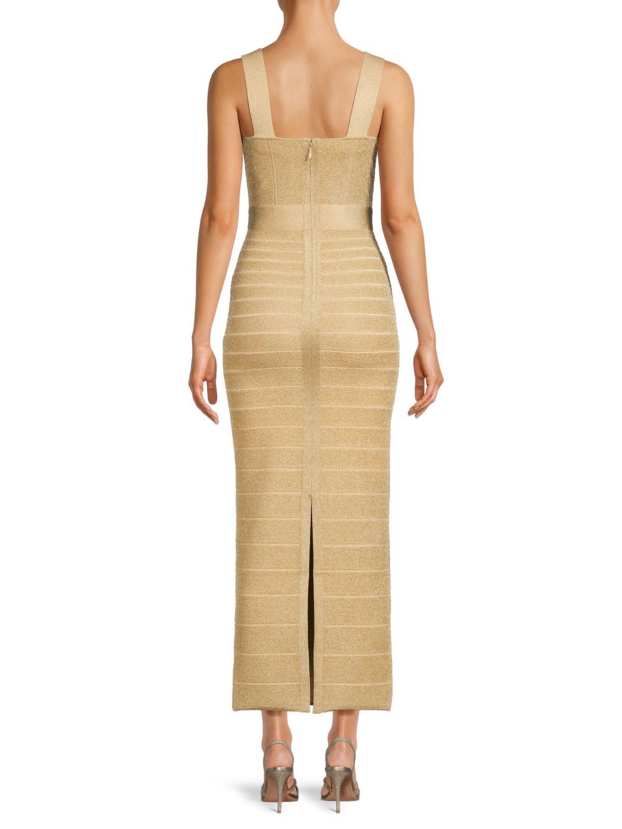 Платье-макси Eva Textured Bodycon Hervé Léger, цвет Metallic Gold