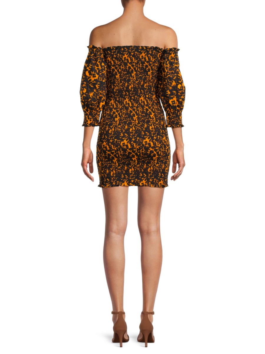 Мини-платье с открытыми плечами и принтом в сборку Third Form, цвет Orange Black 7 275₽