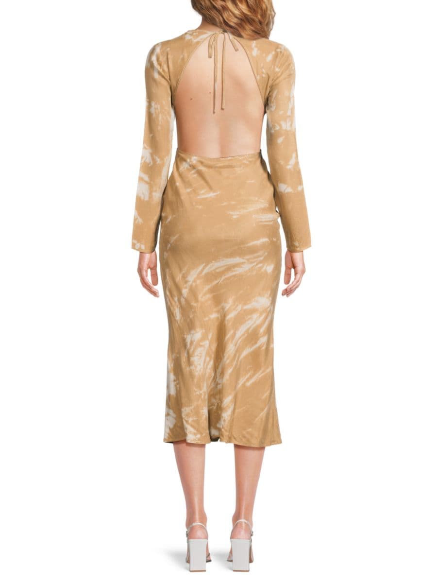 Платье миди Third Form с принтом отличается изысканным круглым вырезом и длинными рукавами, которые дополняет соблазнительная открытая спина с изящной завязкой.
