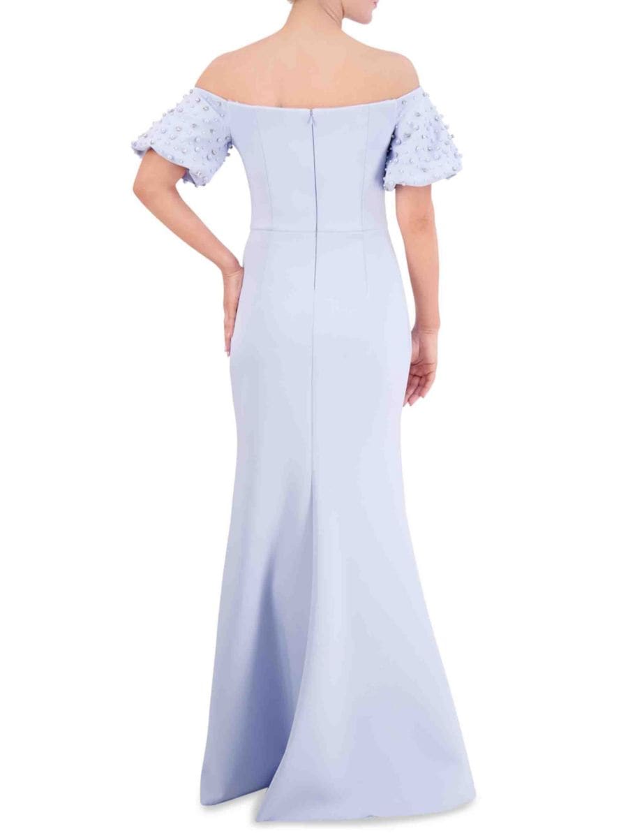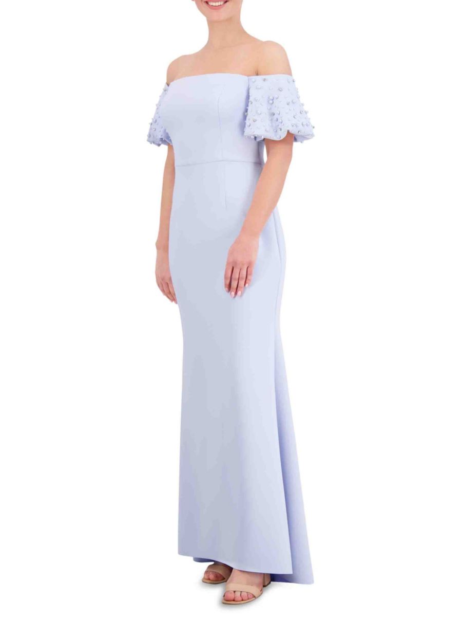 Это платье Eliza J с вырезом на плечах и ослепительно декорированными рукавами-буфами завершает образ этого шикарного изделия.