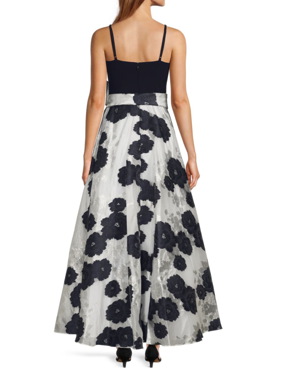 Платье макси от Eliza J украшено красивыми цветочными узорами выжжено, круглым вырезом и завязками на талии, что отлично подходит для создания шикарных и элегантных образов.