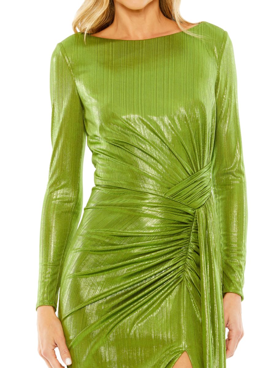 Металлическое платье с рюшами Mac Duggal, цвет Apple Green