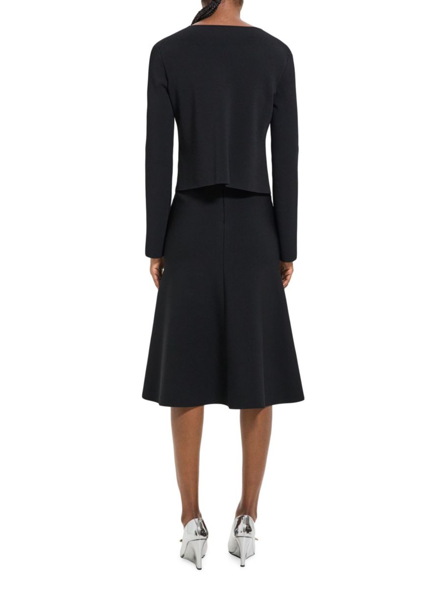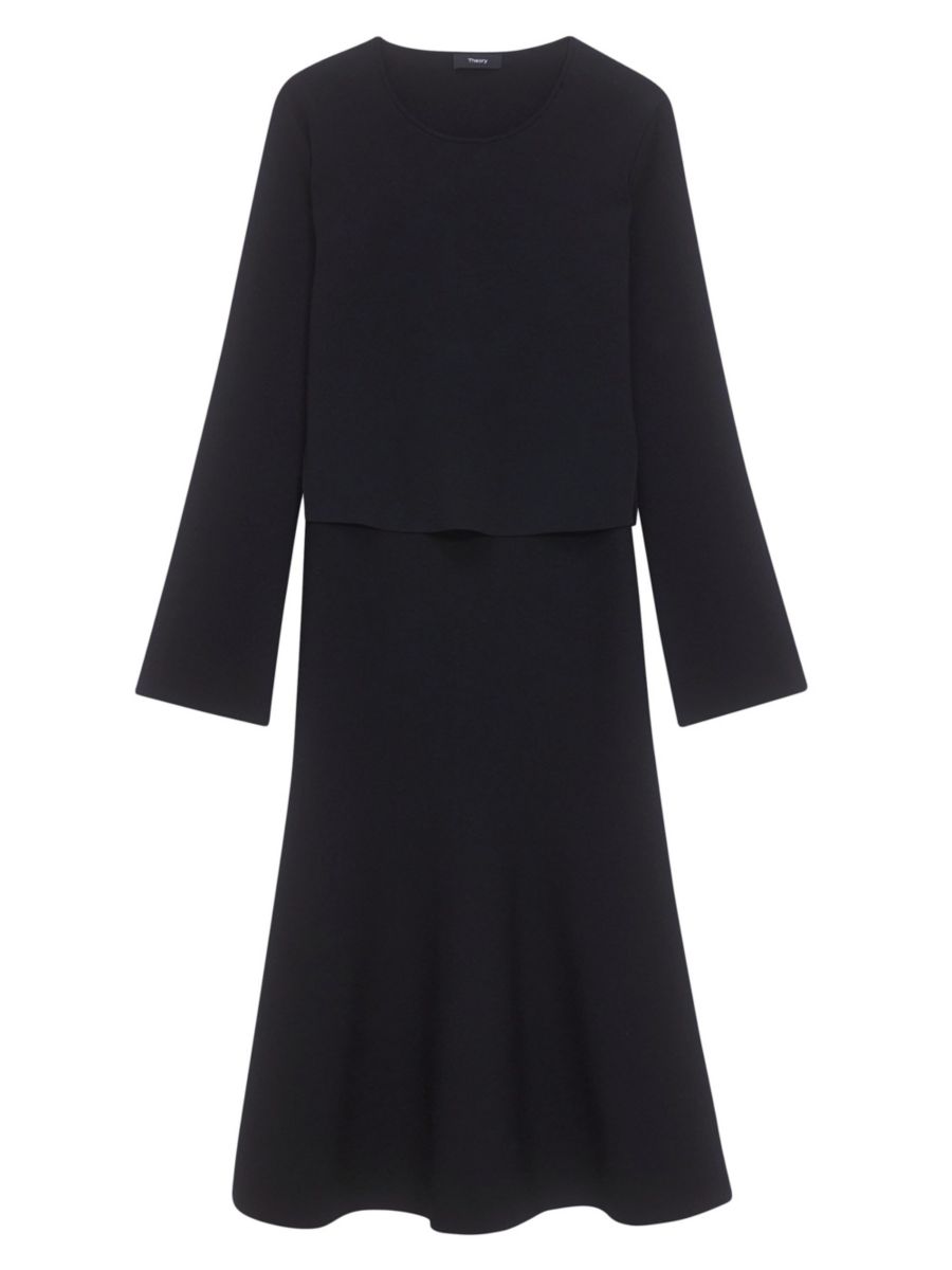 Платье миди от Theory, выполненное в многослойном стиле, выполнено из эластичного трикотажа А-силуэта.