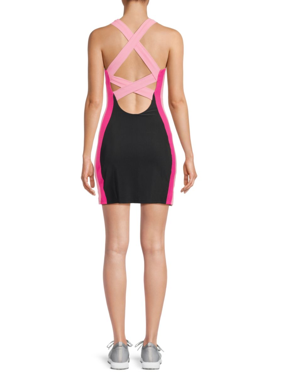Мини-платье Vida с контрастной тесьмой имеет элегантный облегающий силуэт и спортивный перекрещивающийся силуэт на спине.
