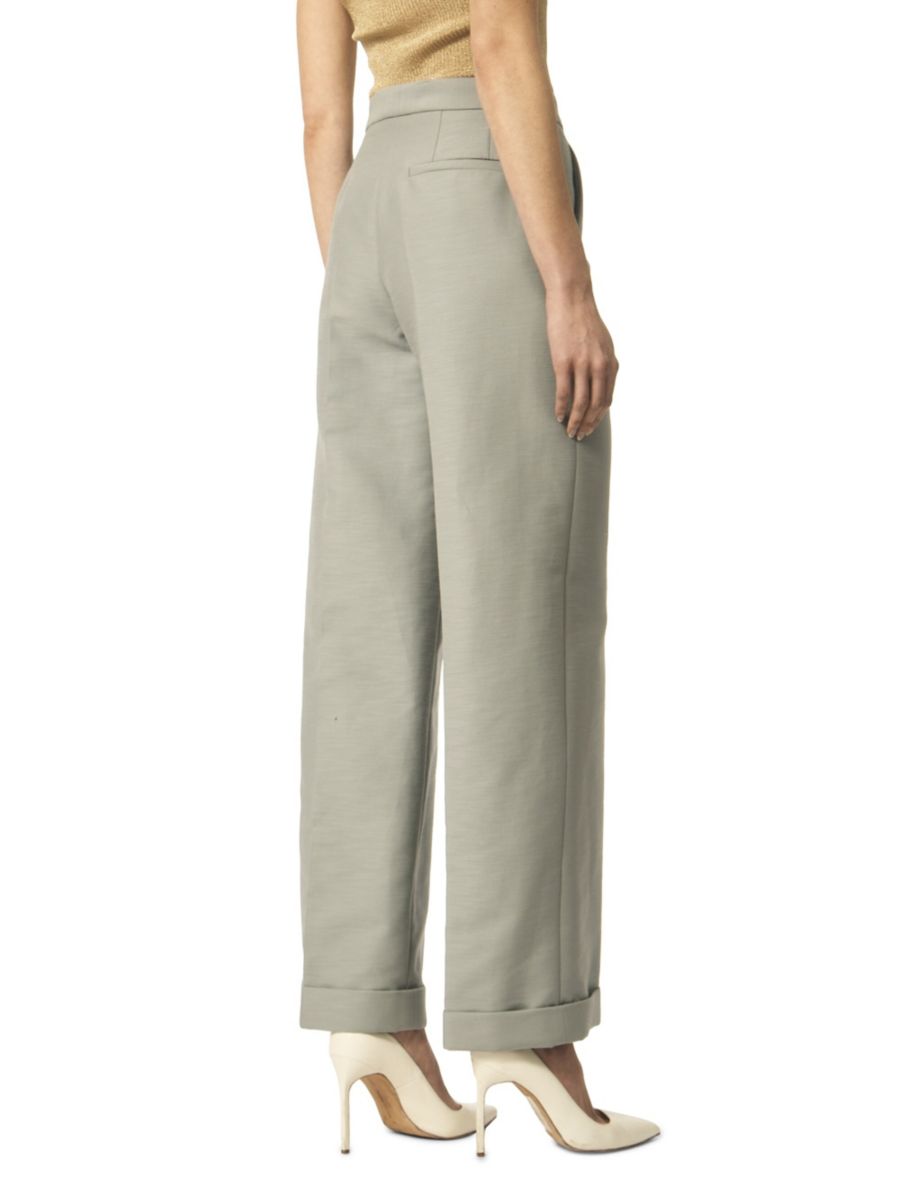 Бренд Interior, основанный в 2020 году дизайнерами Джеком Майнером и Лили Мисмер, предлагает повседневные образы, предлагая изысканную коллекцию свежих базовых моделей и эффектных вечерних нарядов, которые легко комбинировать и сочетать. Брюки Nico из чистого хлопка имеют высокую посадку и прямой силуэт с заутюженными стрелками.