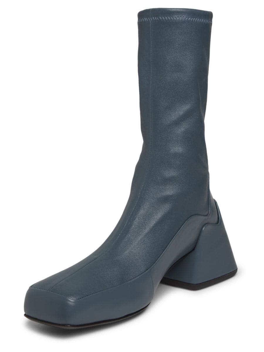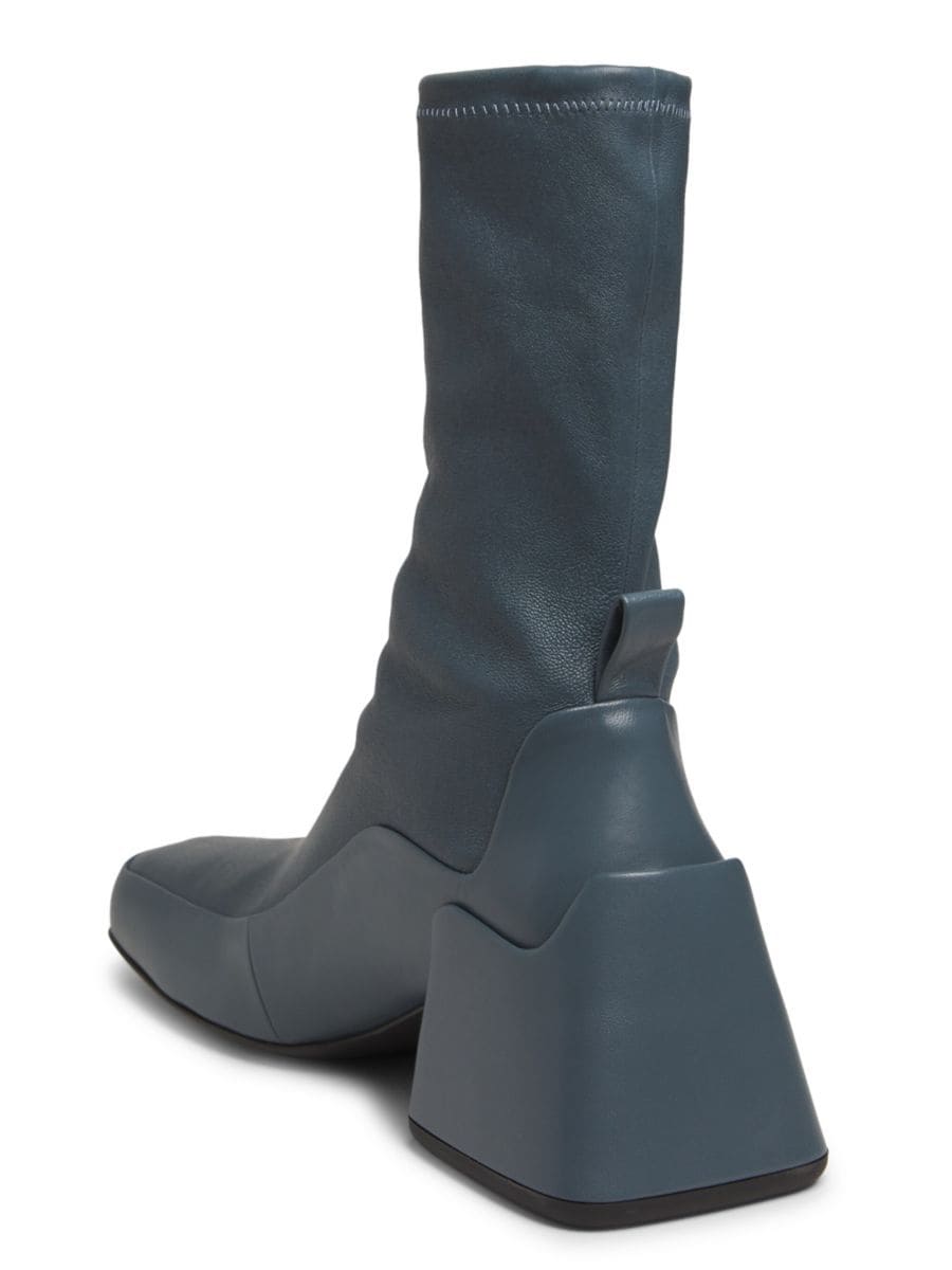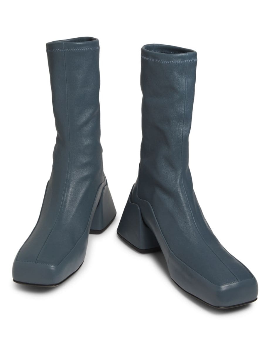 Ботильоны Jil Sander, отличающиеся скульптурным блочным каблуком, изготовлены из кожи и имеют квадратный носок.