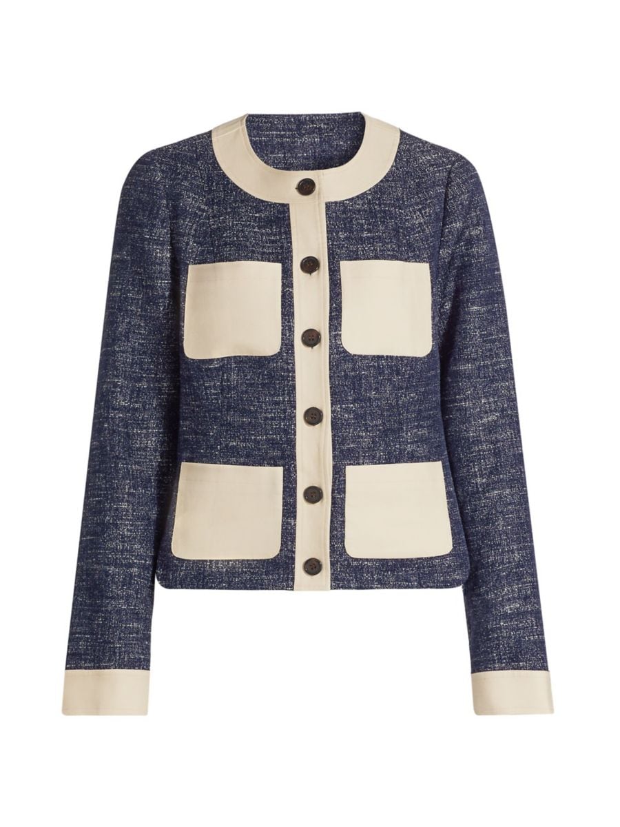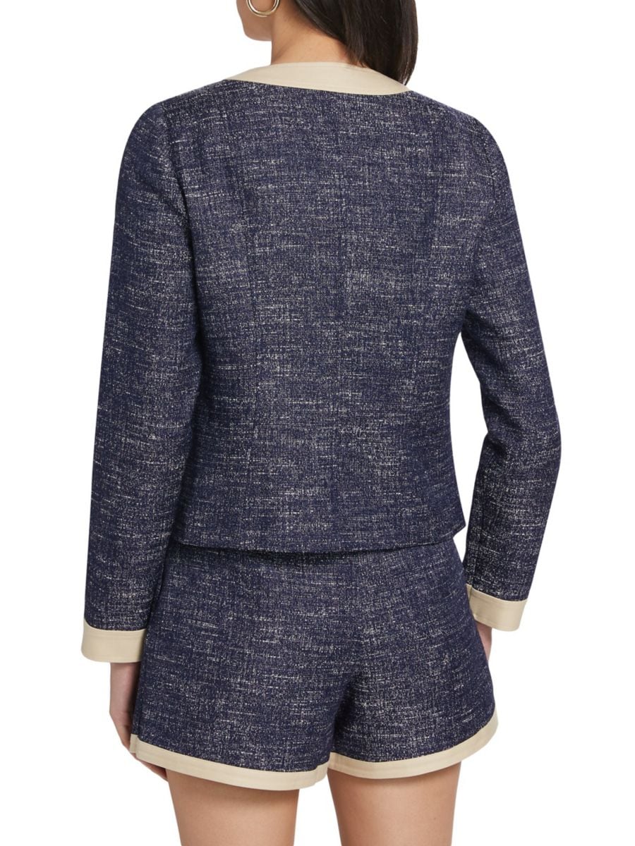 Пиджак If Only Studio, сшитый из плотной букле, дополнен контрастными накладными карманами и отделкой на круглом вырезе, манжетами на резинке и планкой на пуговицах спереди.