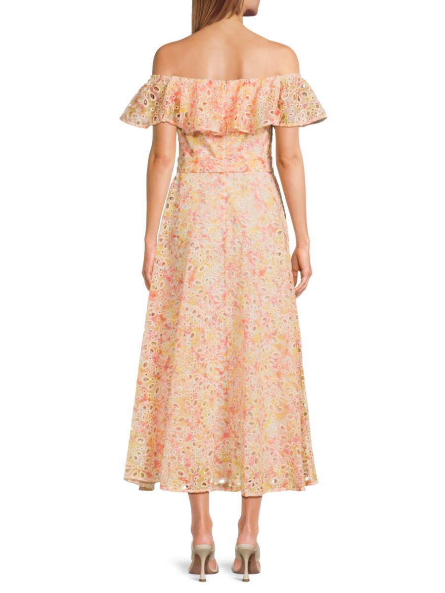 Платье макси с открытыми плечами Schiffli Mikael Aghal, цвет Orange Multi