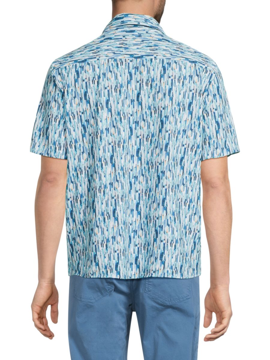 Эта рубашка выполнена из лёгкой ткани с ярким абстрактным принтом. Классическая застёжка на пуговицы спереди и свободный крой создают современный, привлекающий внимание образ.