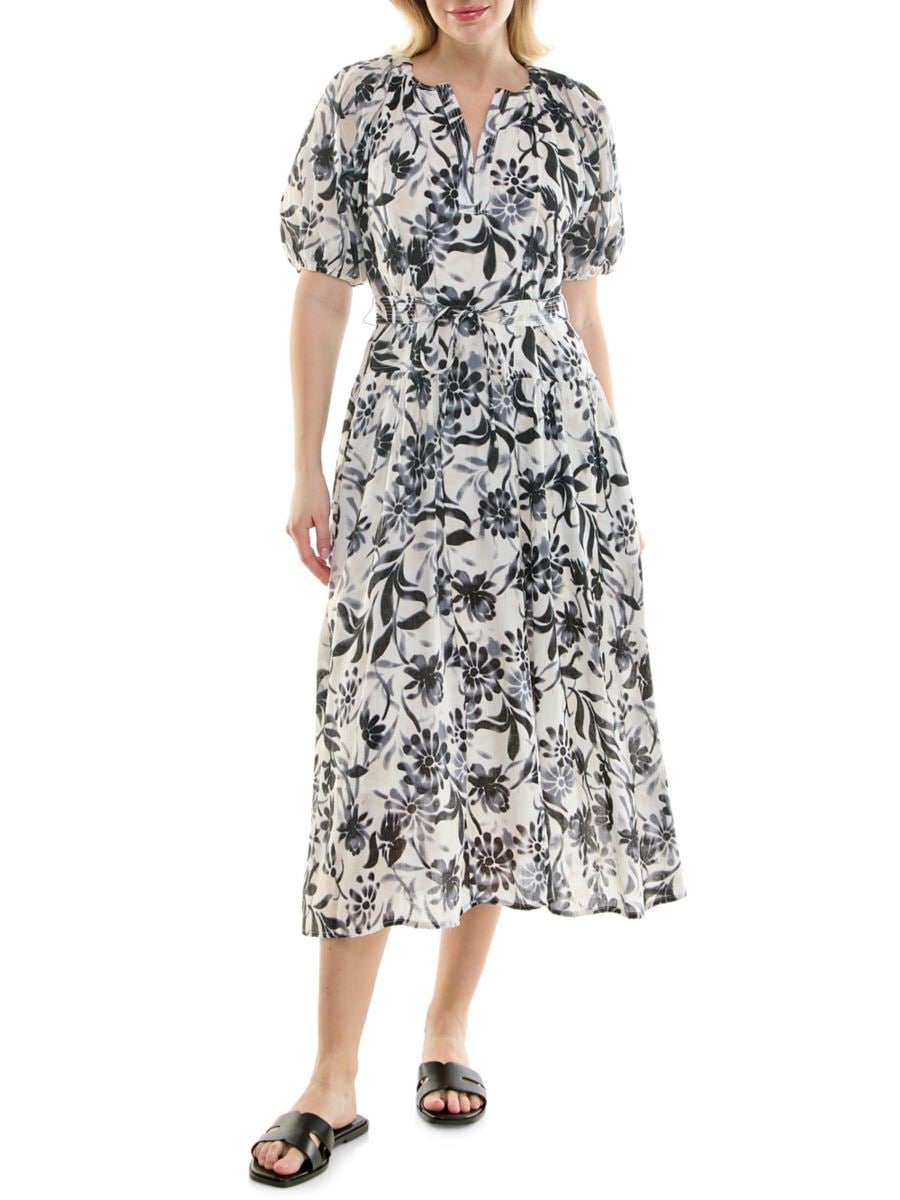 Это жатое платье с принтом от Nicole Miller отличается изящной отделкой трапунто на талии и струящимся силуэтом с поясом.