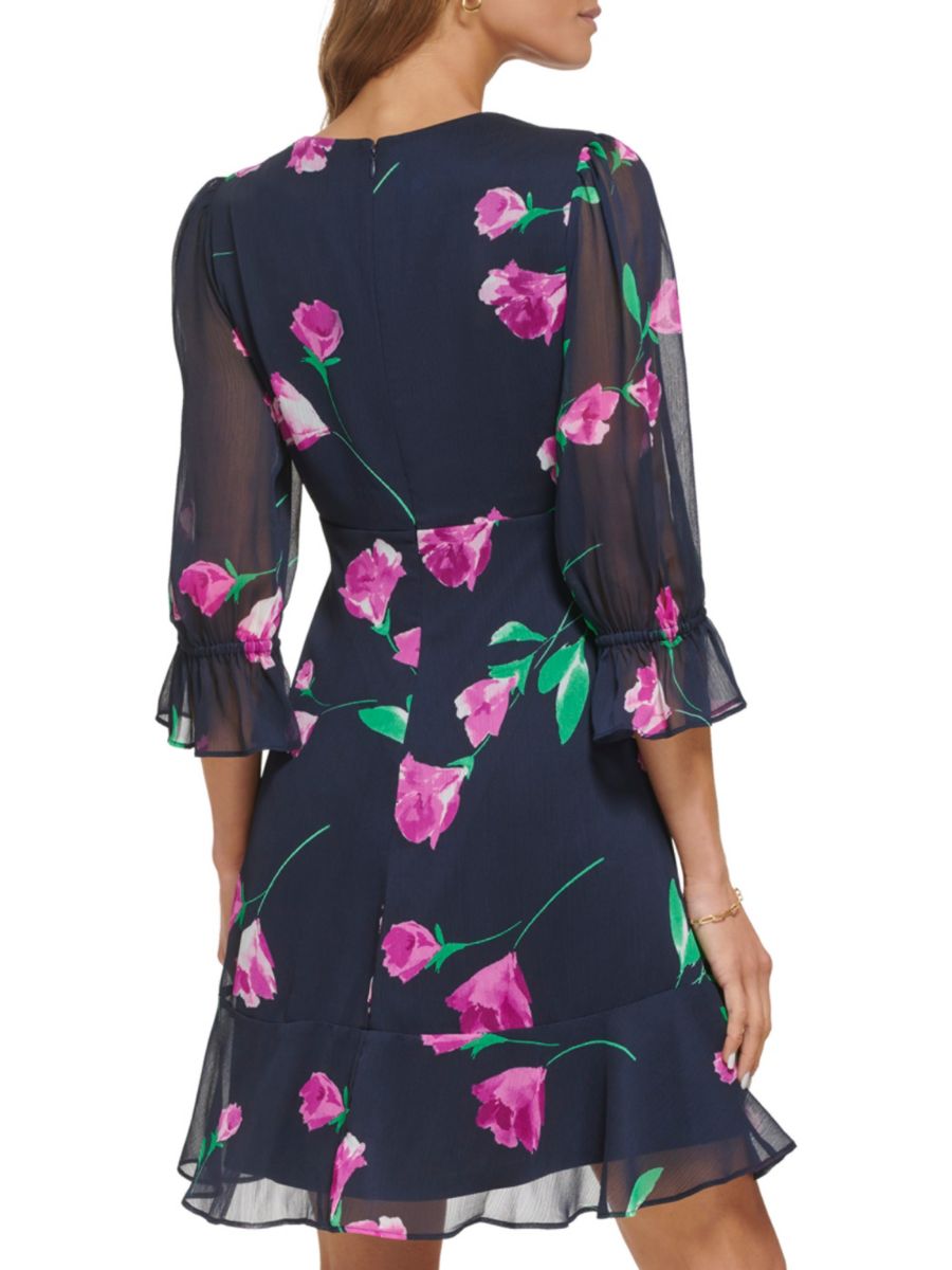Мини-платье с цветочным принтом и клешем DKNY, цвет Navy Rasberry