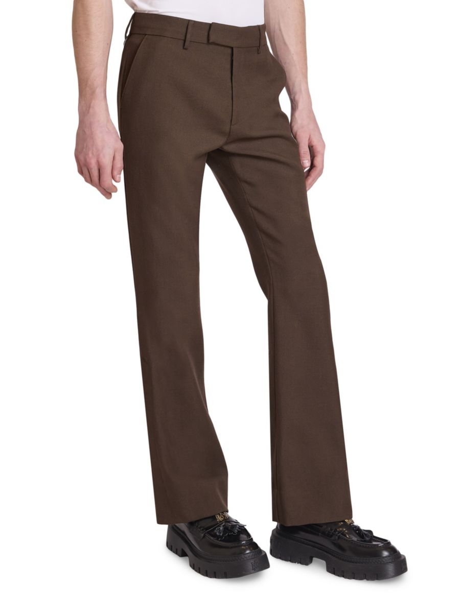 Эти шерстяные брюки Amiri подчеркивают приталенный, расклешенный силуэт, дополненный удлиненным поясом с хлястиком. Боковые швы и прорезные карманы сзади обеспечивают изысканный комфорт.