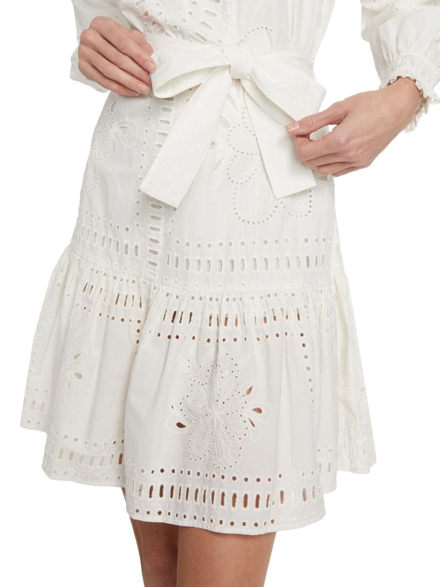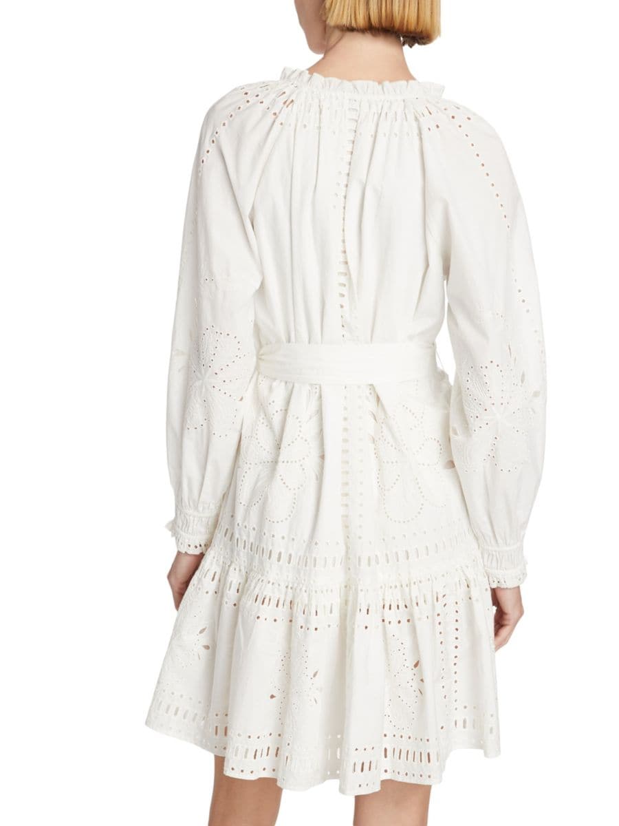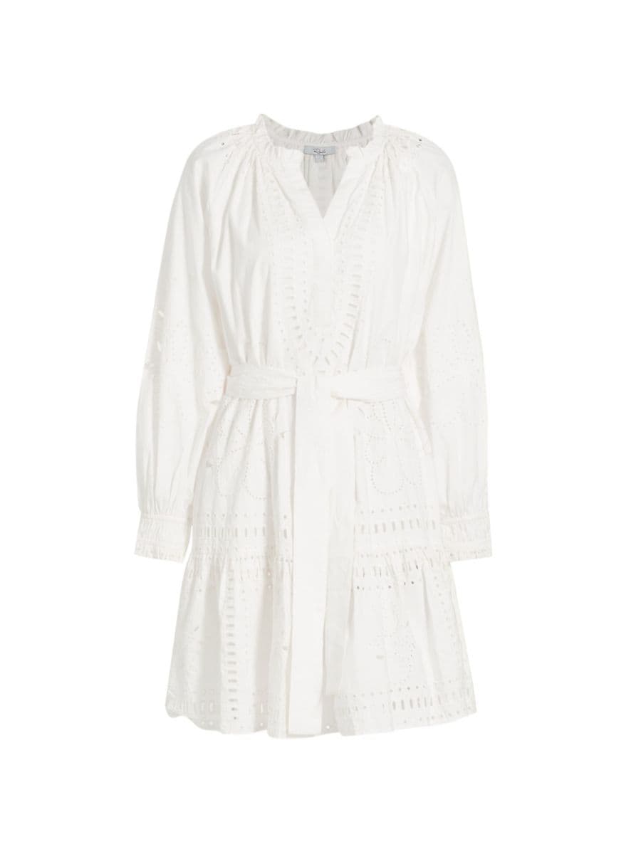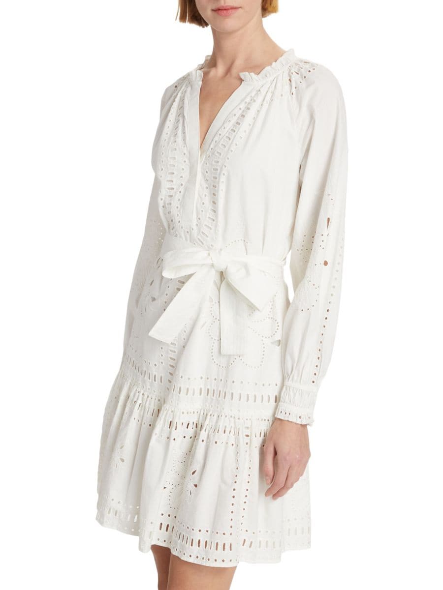 Платье Saylor от Rails украшено изысканной хлопковой отделкой с люверсами и завязывается на талии. Длинные рукава и оборка на вороте завершают образ.