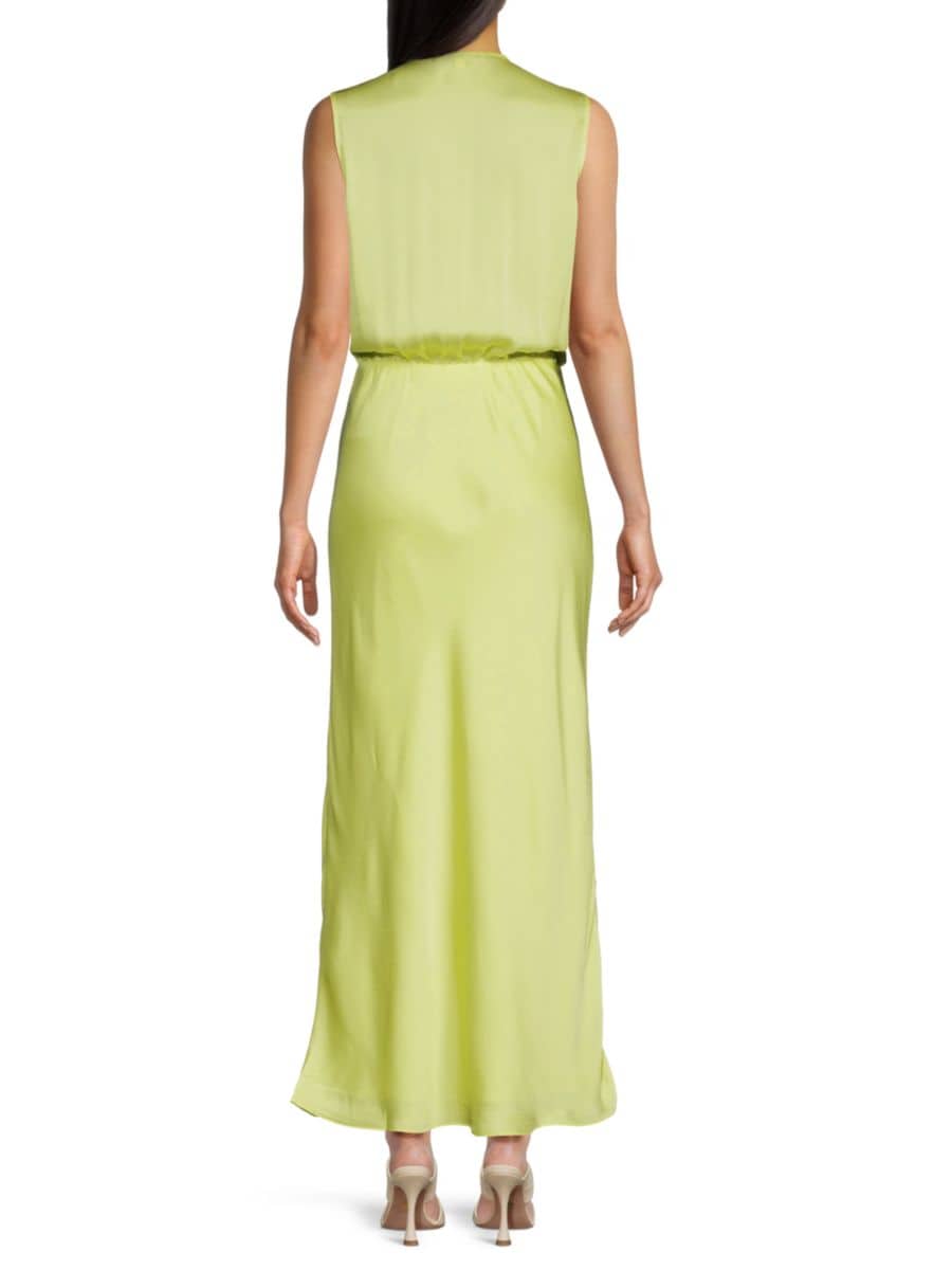 Это макси-платье с разрезом на горловине от Favorite Daughter выполнено из мягкого, струящегося материала со сборками на талии. Его минималистичный крой создаёт сдержанный образ вечернего наряда.