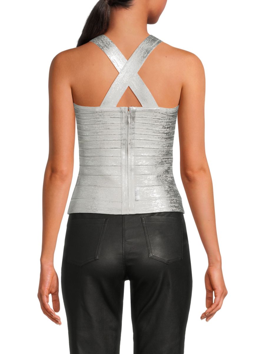 Топ Serena Criss-Cross Back Hervé Léger, цвет Silver Foil