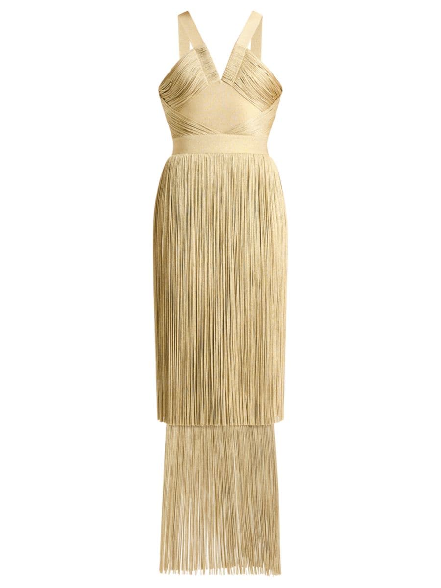 Платье Cora Metallic с бахромой Hervé Léger, золотой