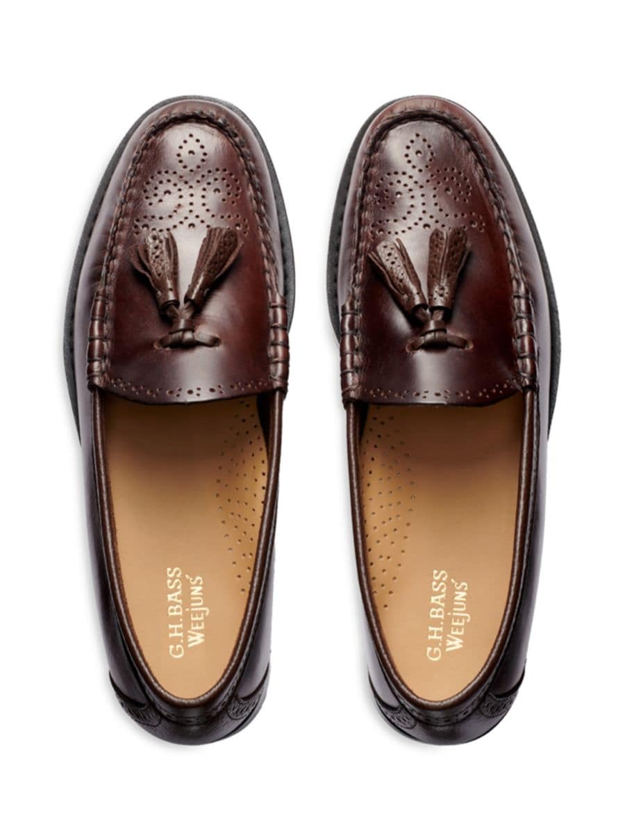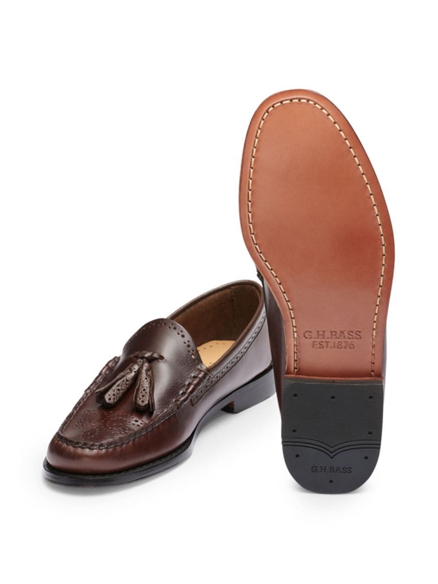 Эти кожаные лоферы от GH Bass украшены классическими деталями в стиле броги и кисточками, придающими им изысканный вид. Ручная пошивка обеспечивает прочность, а кожаная подошва придает обуви изысканный вид.