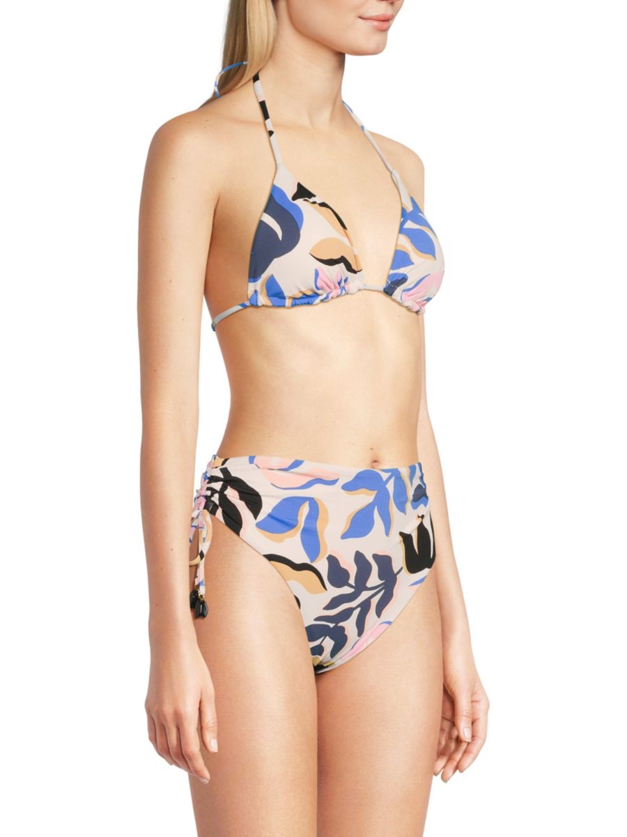 Яркие растительные мотивы оживляют этот треугольный бикини-топ от Red Carter с регулируемыми завязками-халтер для индивидуальной посадки. Классический силуэт полностью на подкладке для комфорта и поддержки.