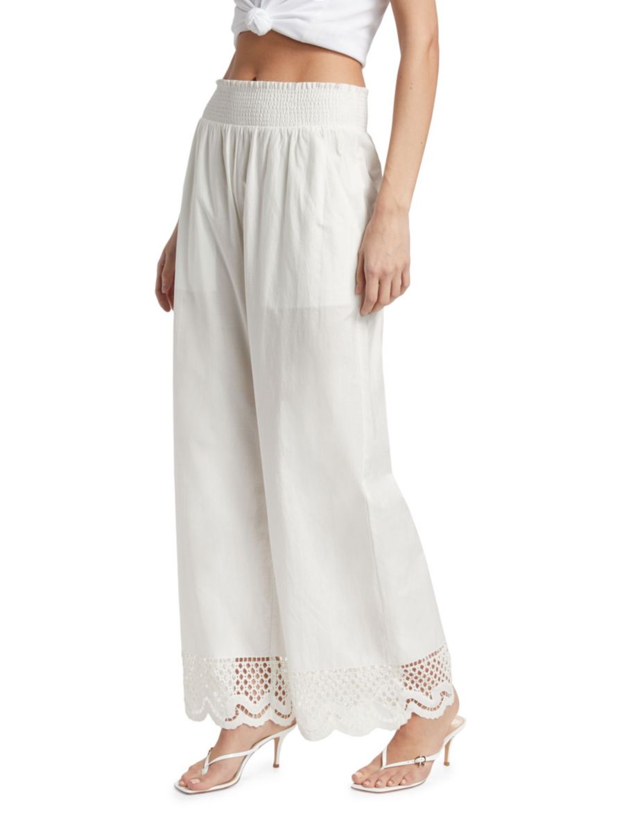 Хлопковые брюки с фестончатым узором Henrik Rails, белый