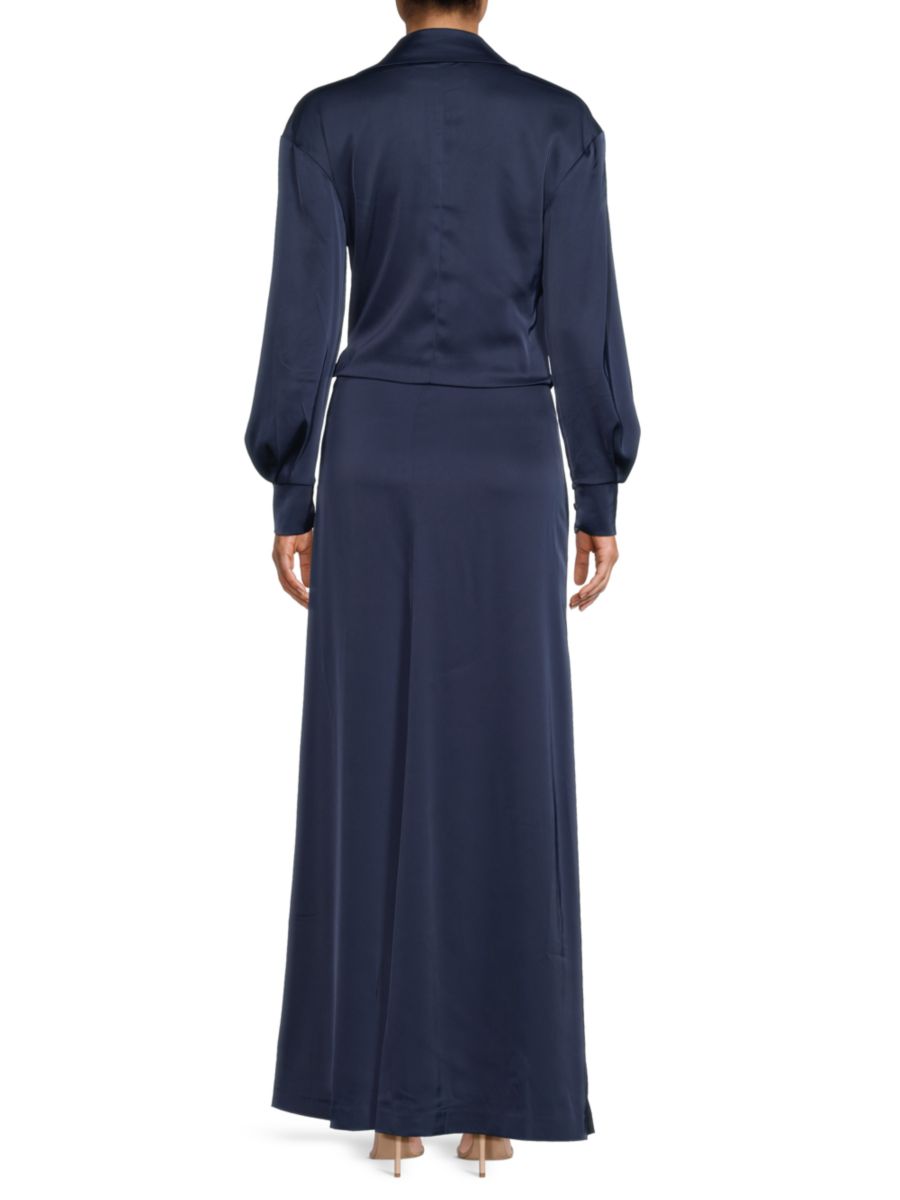 Платье-халат Ivon Faux Wrap из сатина Halston, темно-синий 16 416₽