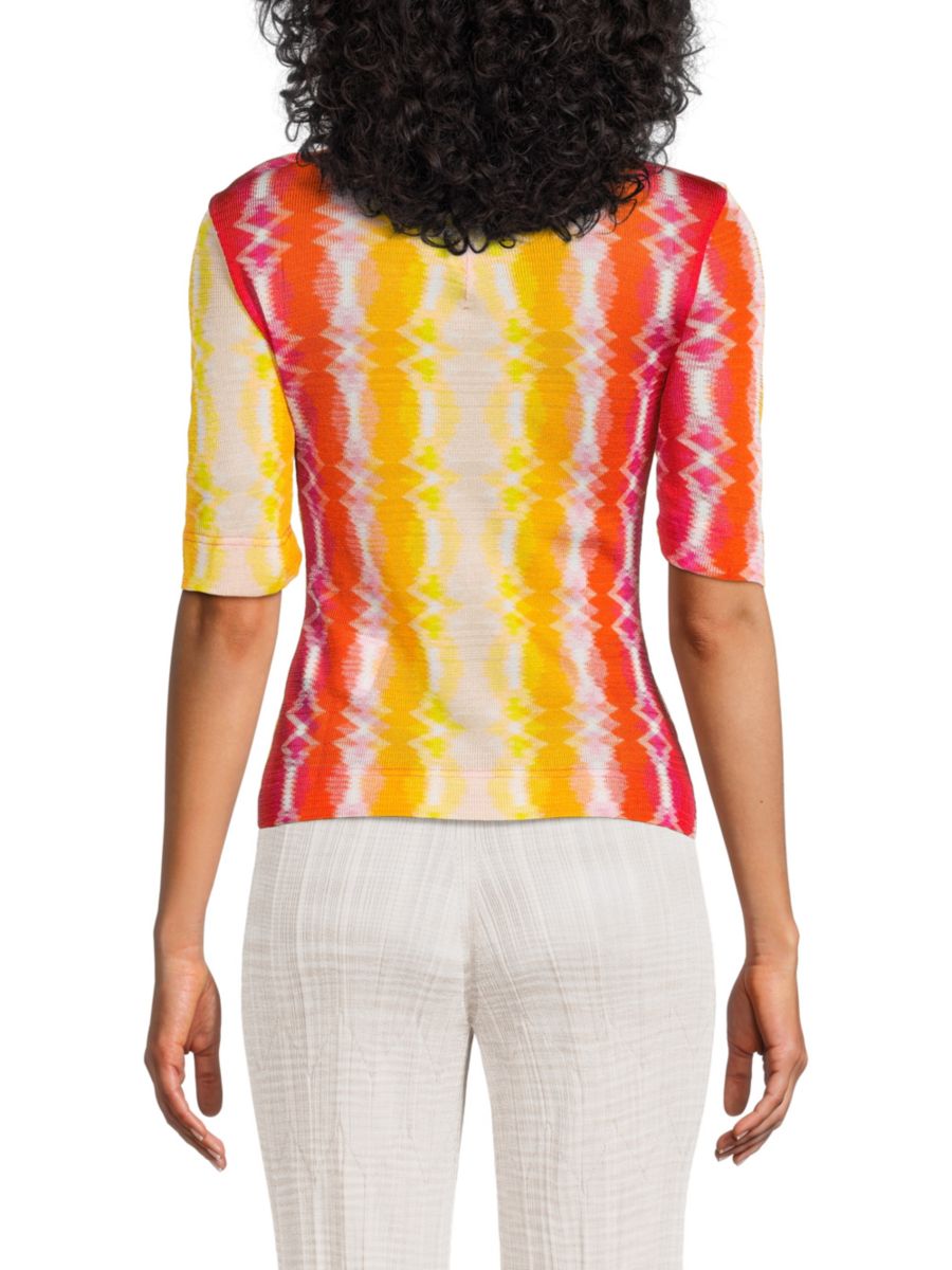 Топ с принтом M Missoni выполнен с имитацией водолазки и рукавами до локтя.