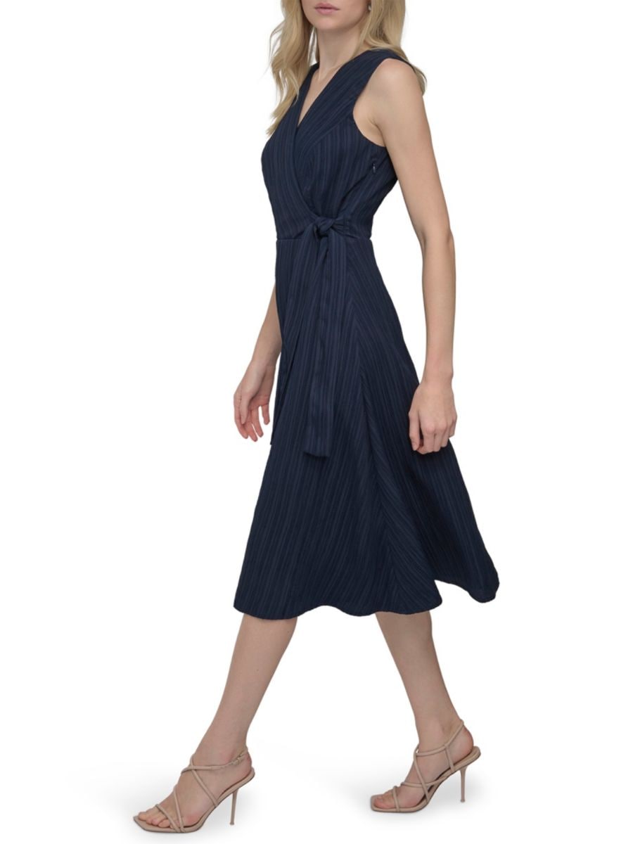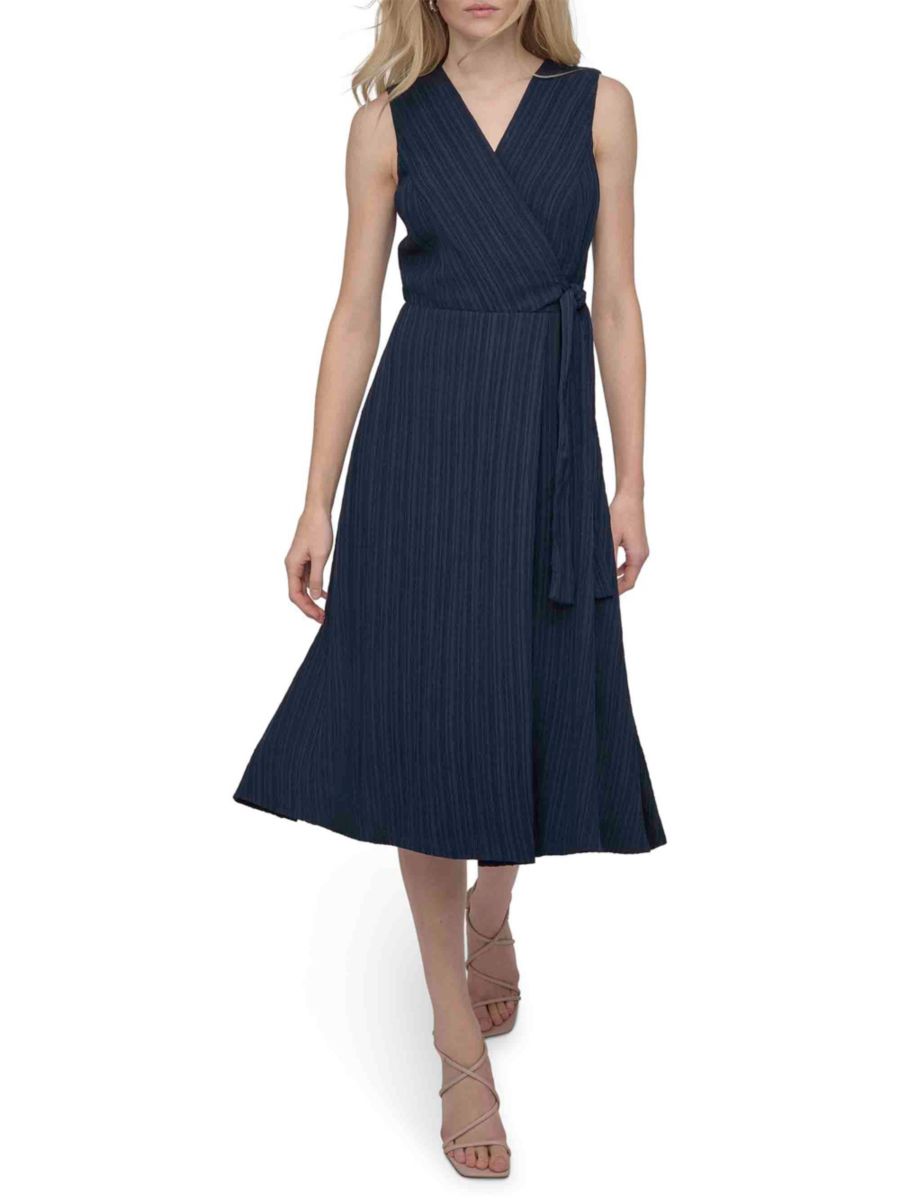 Платье-миди с имитацией запаха Добби DKNY, темно-синий