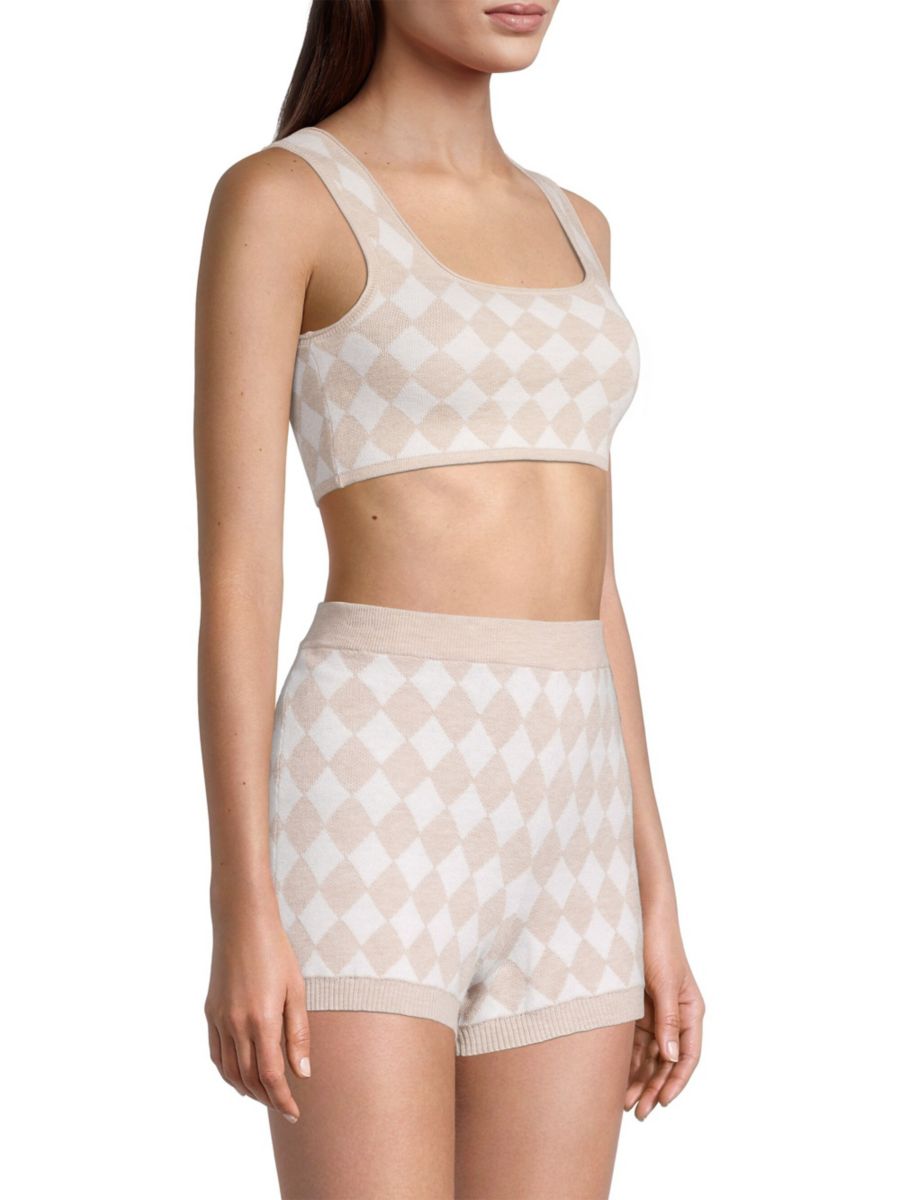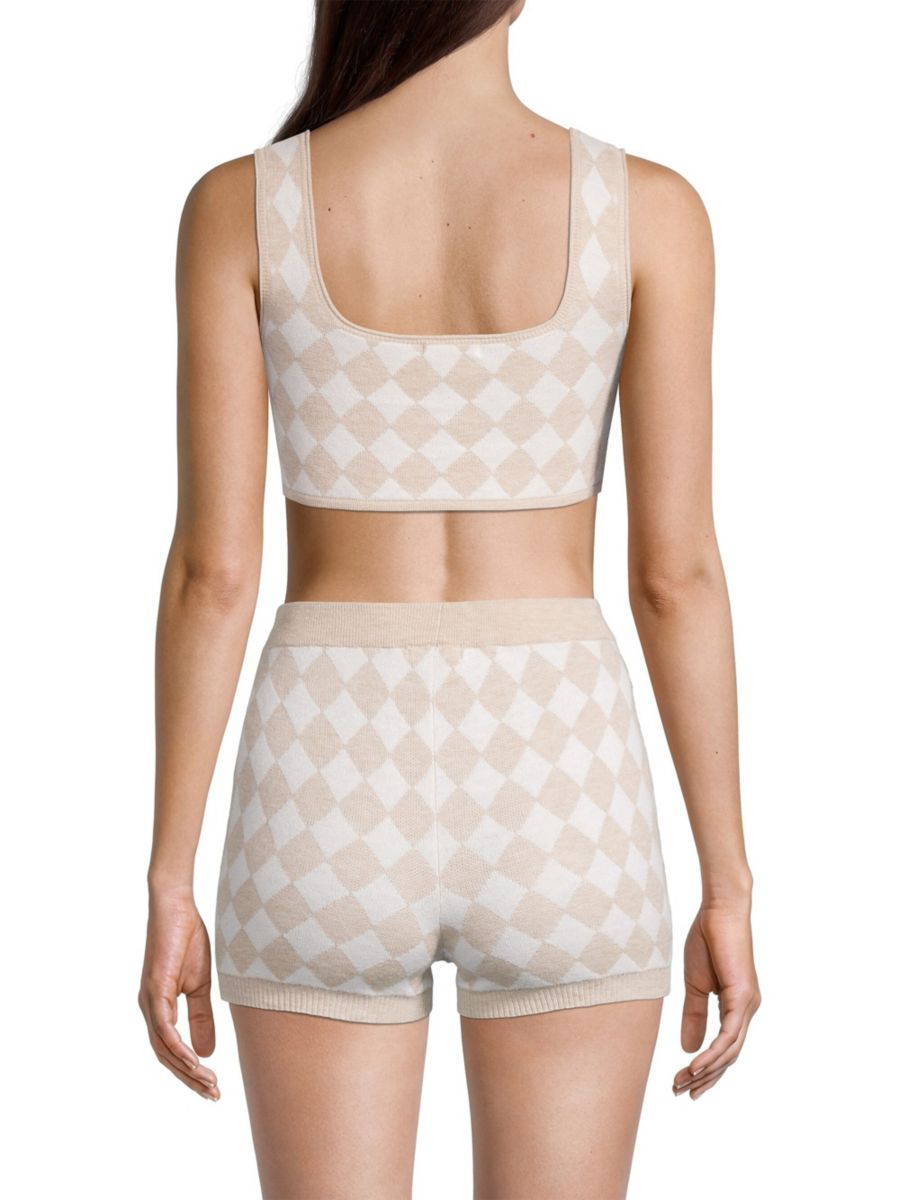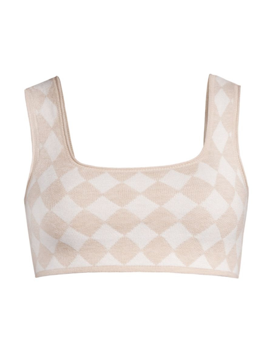 Бюстгальтер-топ Posey от Skin выполнен из хлопкового трикотажа с ромбовидным узором. Квадратный вырез горловины и квадратная спинка завершают этот мягкий пуловер.
