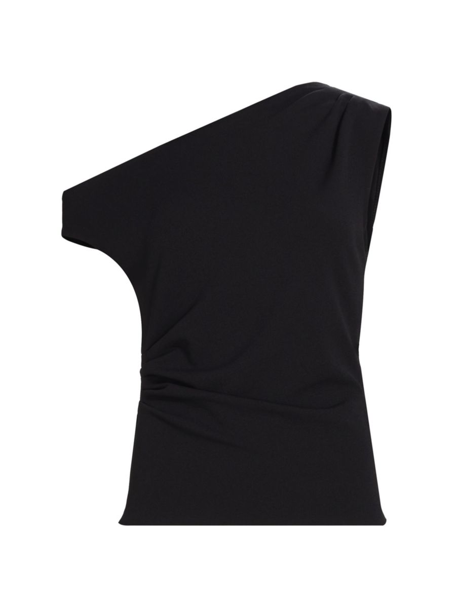 Топ Gio от Tanya Taylor, сшитый из крепа скуба, имеет асимметричный силуэт со сборками для придания формы.
