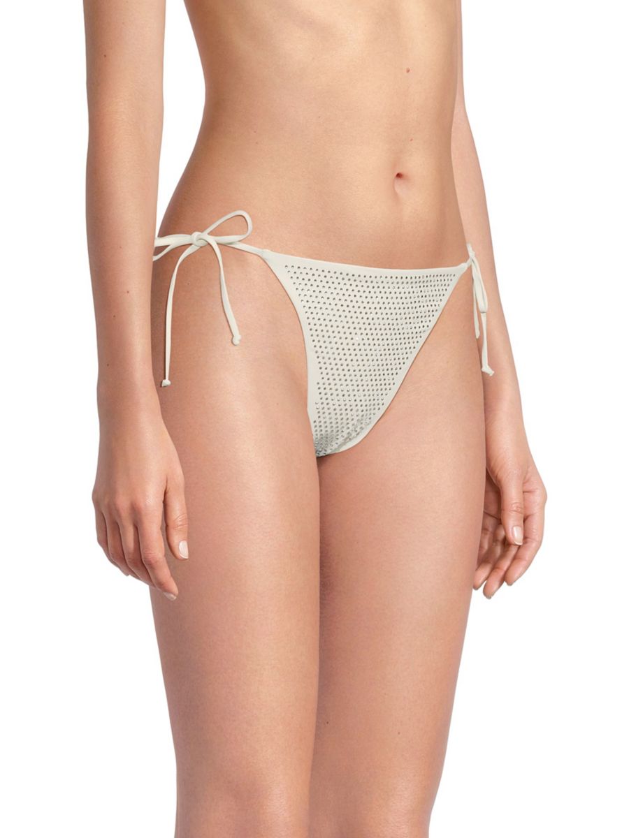 Эти минималистичные плавки-бикини с завязками по бокам от WeWoreWhat изготовлены из эластичного нейлона и украшены по всей поверхности для создания легкого текстурированного мерцания.