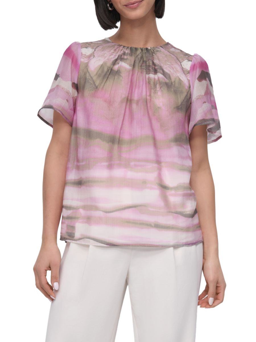 Топ с абстрактным принтом DKNY, цвет Pink Multicolor