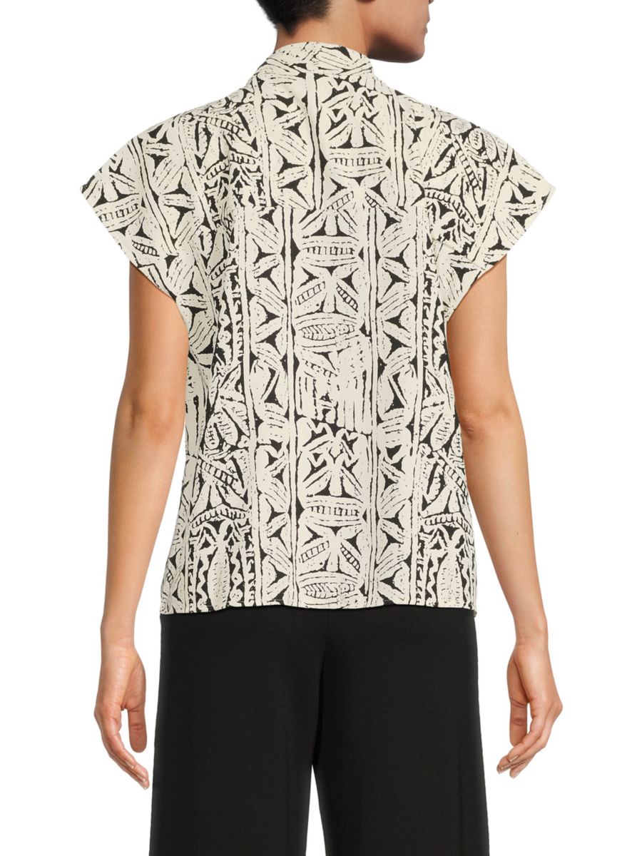 Этот принтованный топ от Halston имеет V-образный вырез и короткие удлиненные рукава для непринужденного, структурированного образа.