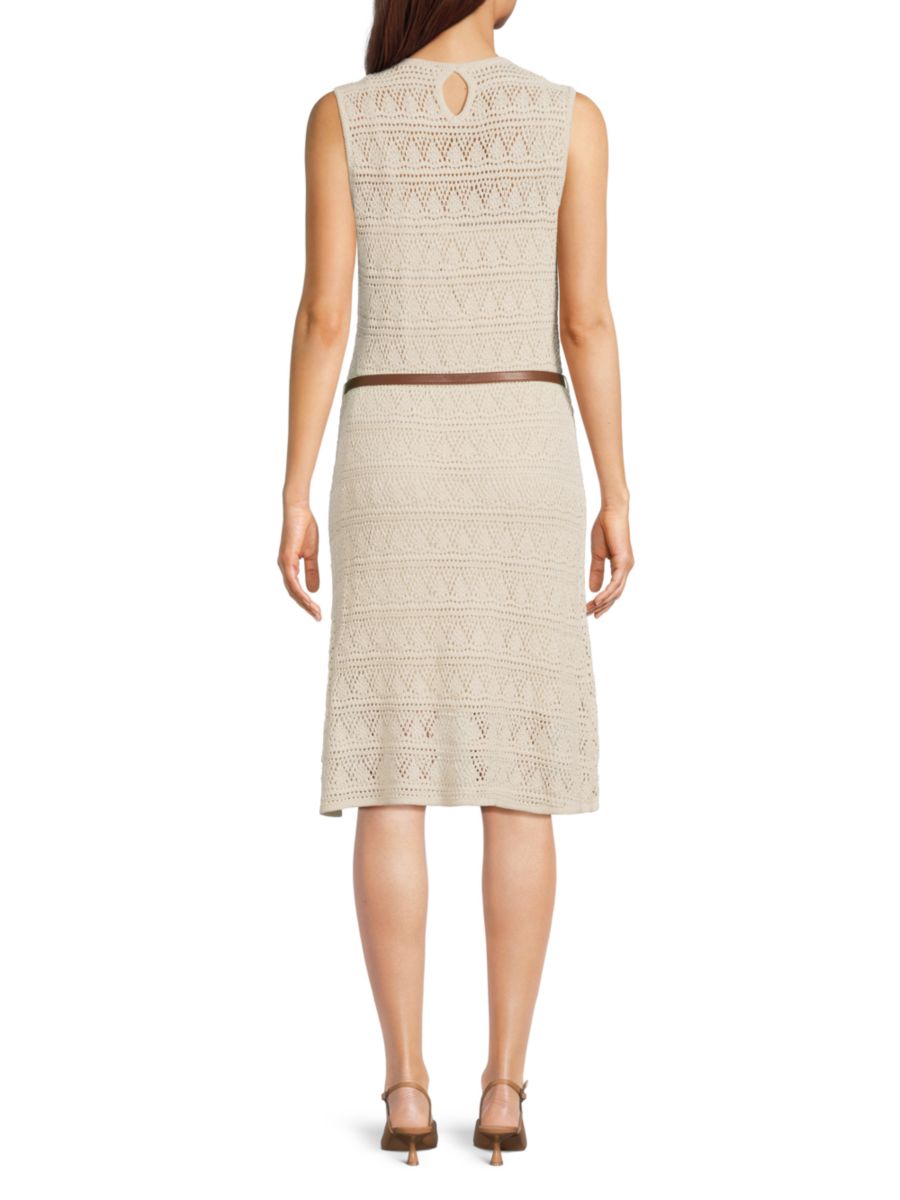 Платье длиной до колена с поясом, связанное крючком Halston, кремовый 7 154₽