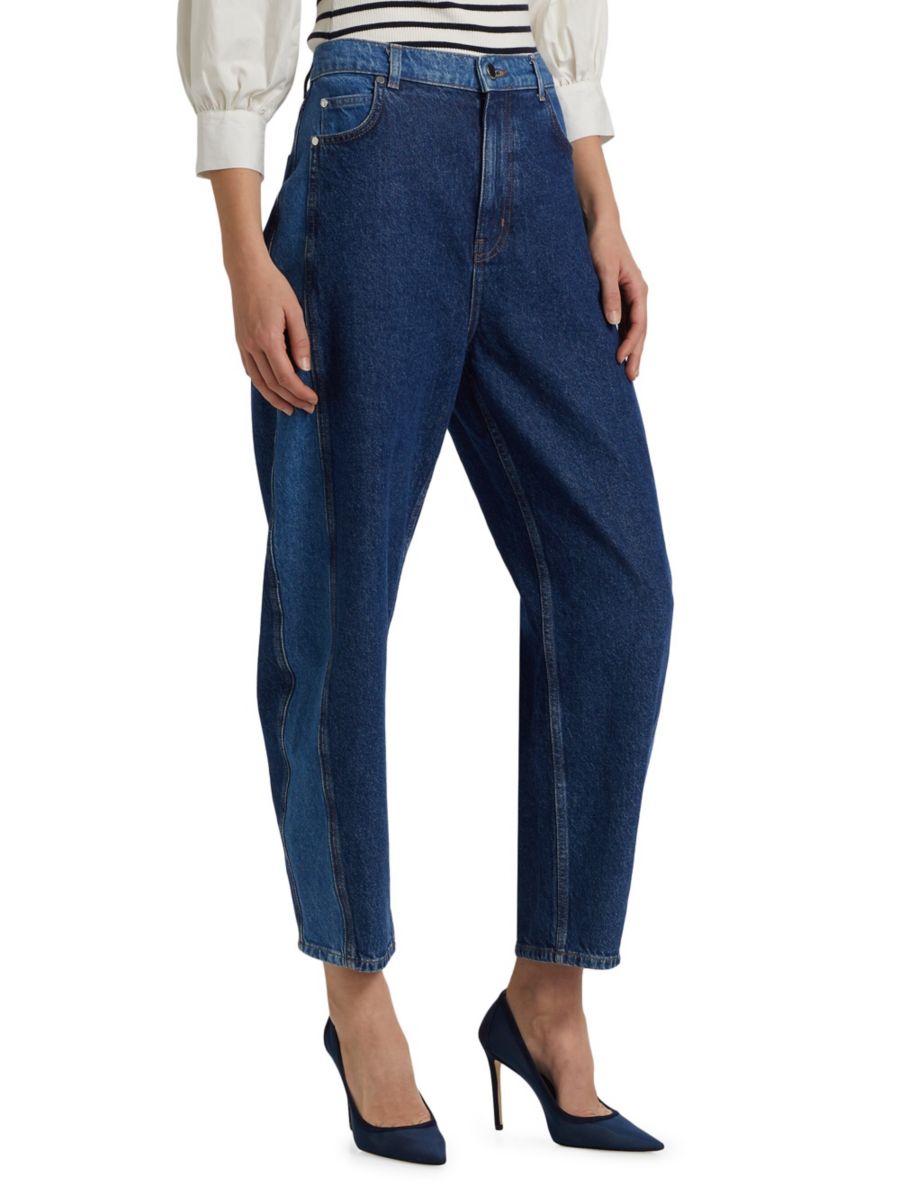 Джинсы-бочонки Denise от Derek Lam 10 Crosby's демонстрируют дизайн с цветными блоками и среднюю посадку.