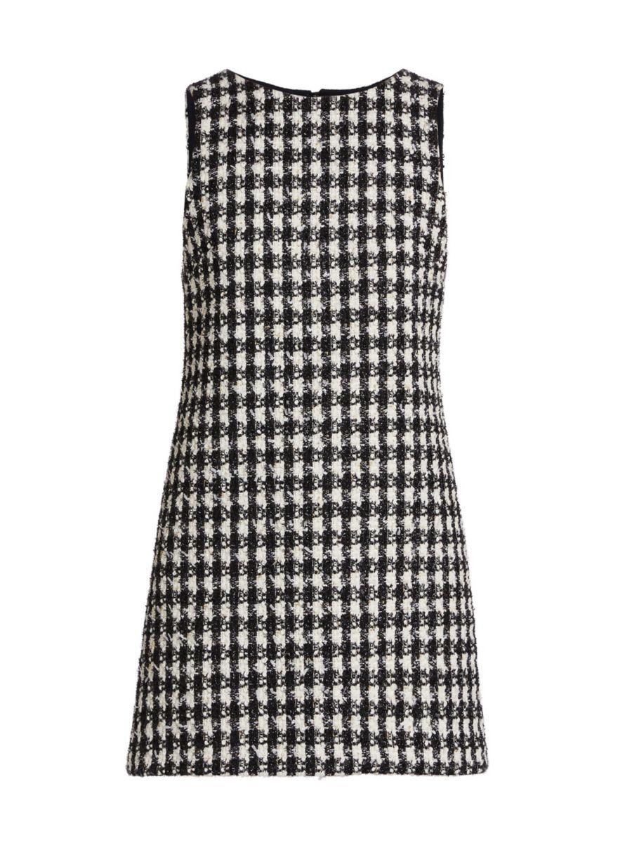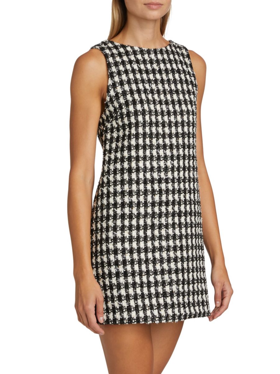 Платье-рубашка Clyde от Alice + Olivia сшито из двухцветного твида в мелкую ломаную клетку со слегка расклешенным силуэтом.