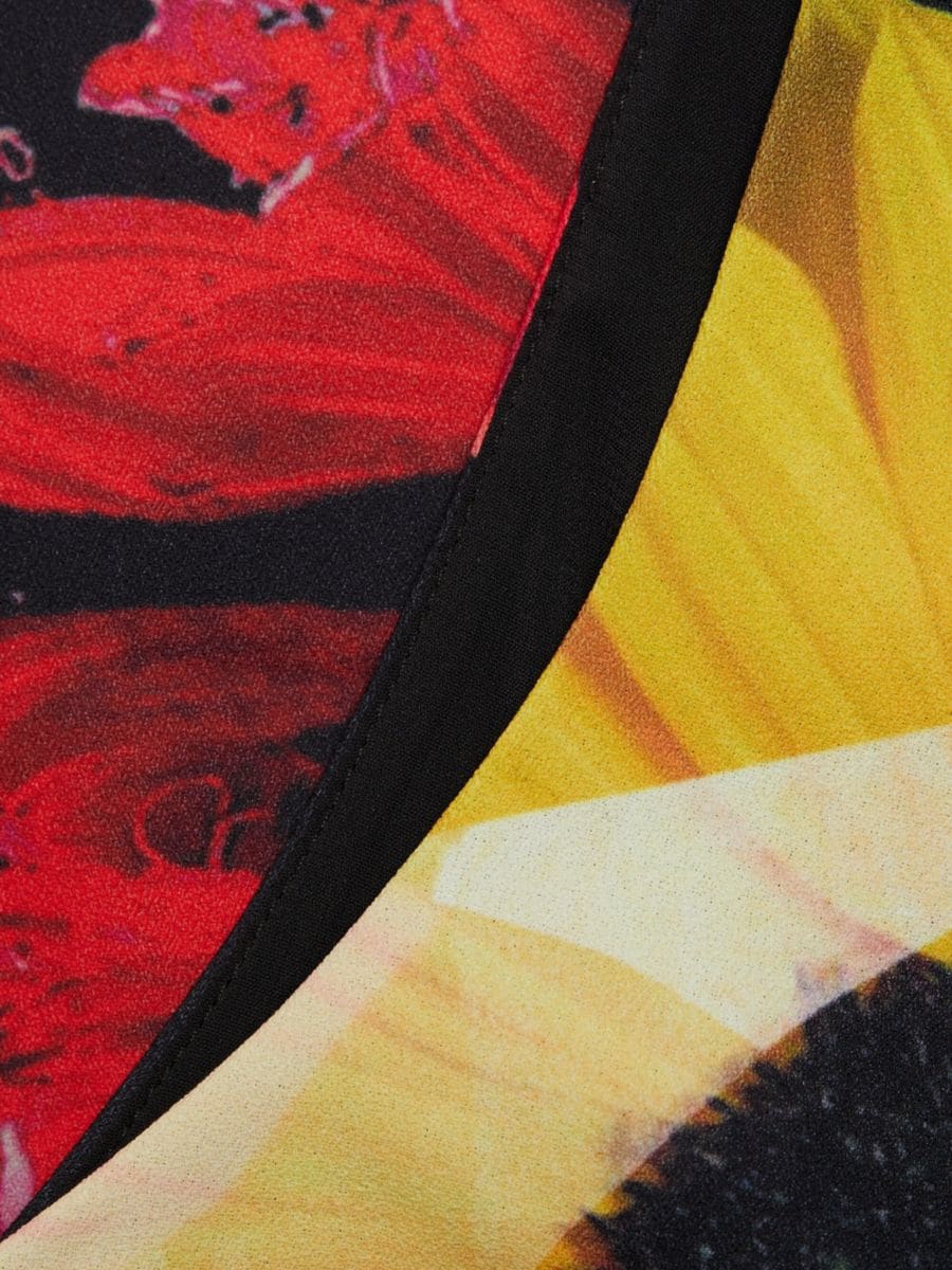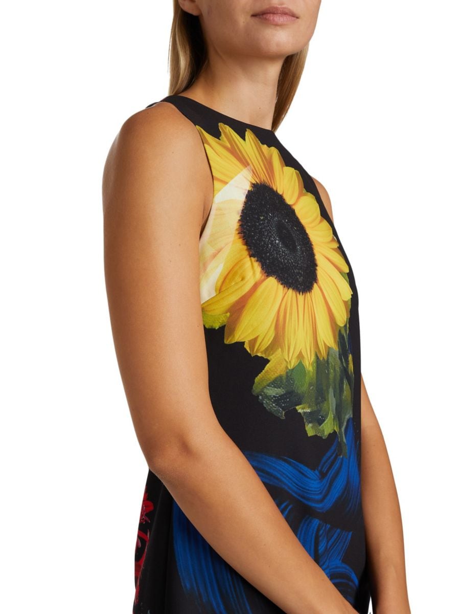 Платье-трапеция Clyde от Alice + Olivia украшено цветочным узором в стиле 90-х и юбкой с легким А-образным силуэтом.