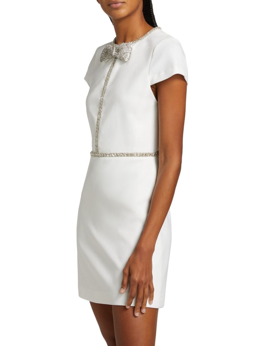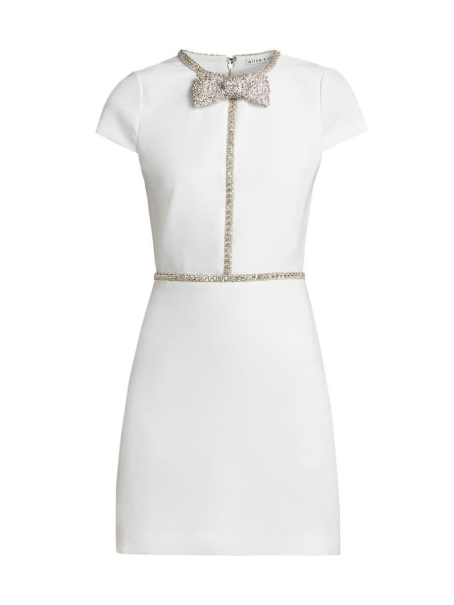 Мини-платье Sophie А-силуэта от Alice + Olivia украшено бантом и отделкой, украшенными кристаллами.