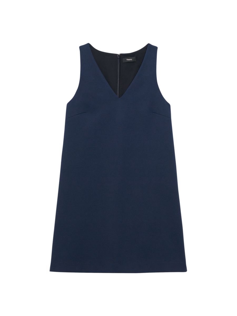 Это мини-платье без рукавов от Theory подчеркивает свободный силуэт, дополненный V-образным вырезом.