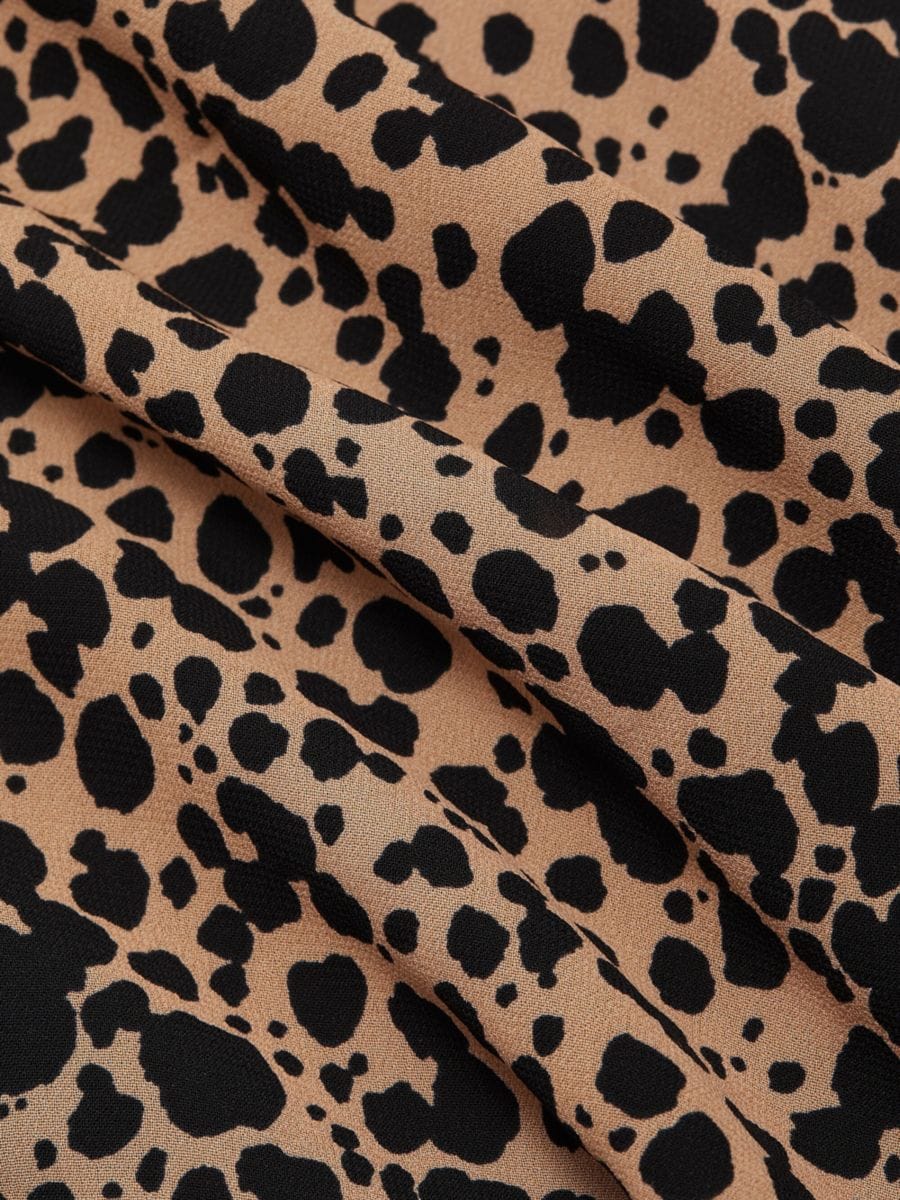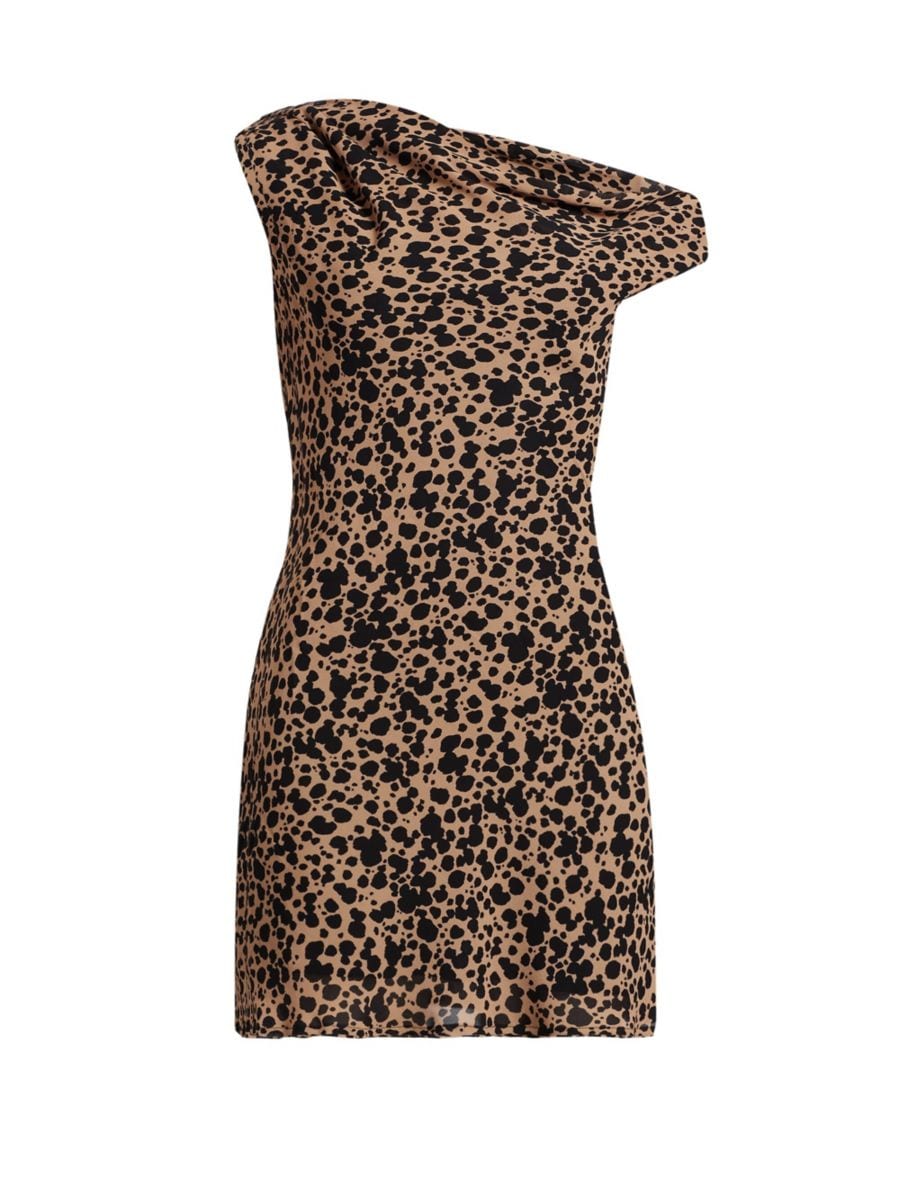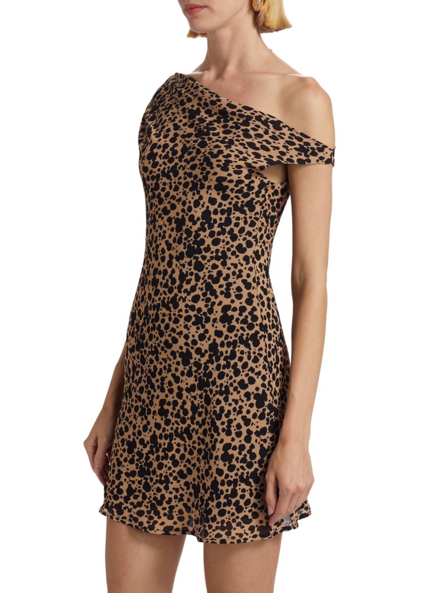 Это мини-платье Kristine от Reformation отличается свободным силуэтом, асимметричным вырезом и леопардовым принтом по всей длине.