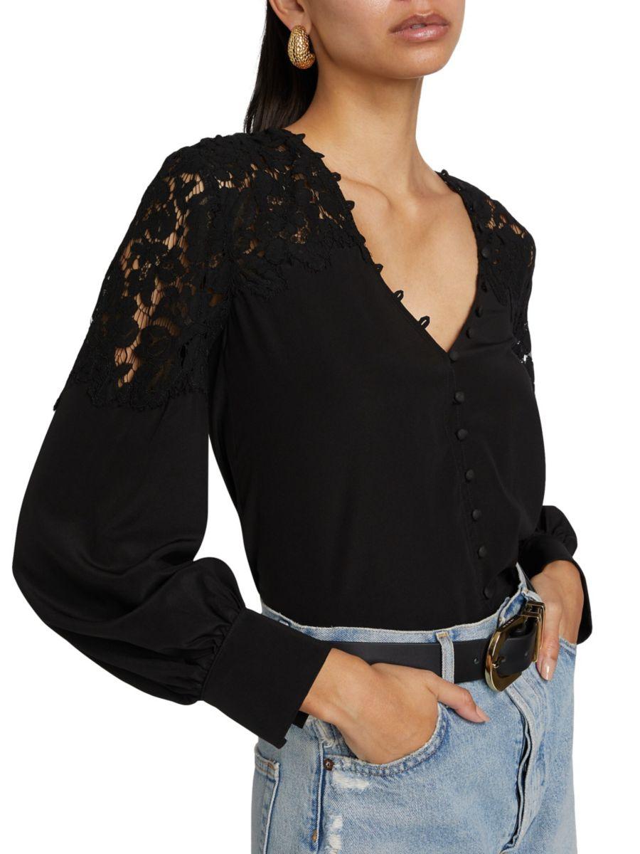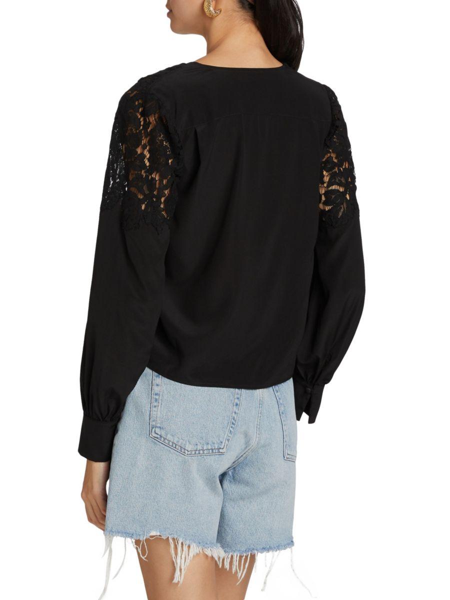 Блузка Harlea из эластичного шёлка от Generation Love украшена кружевными вставками на кокетке.