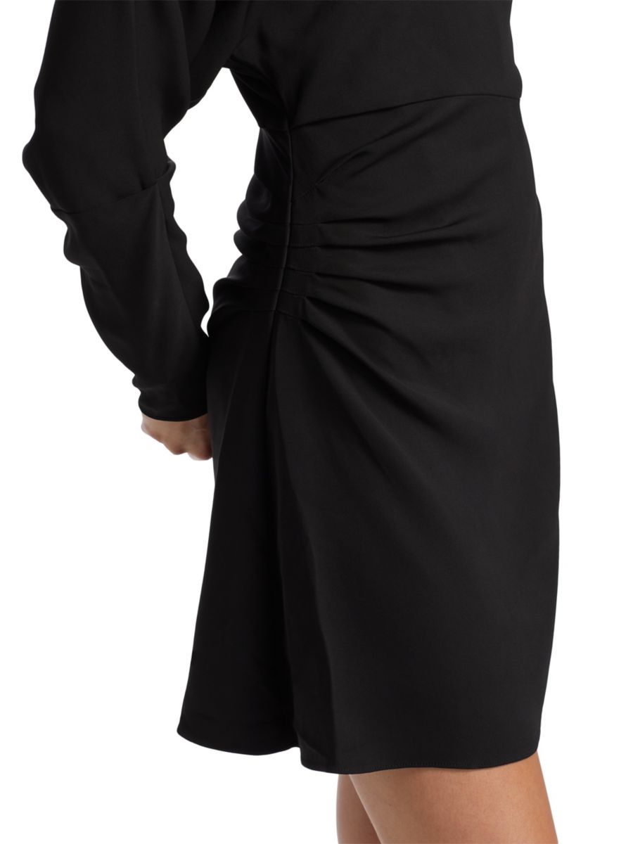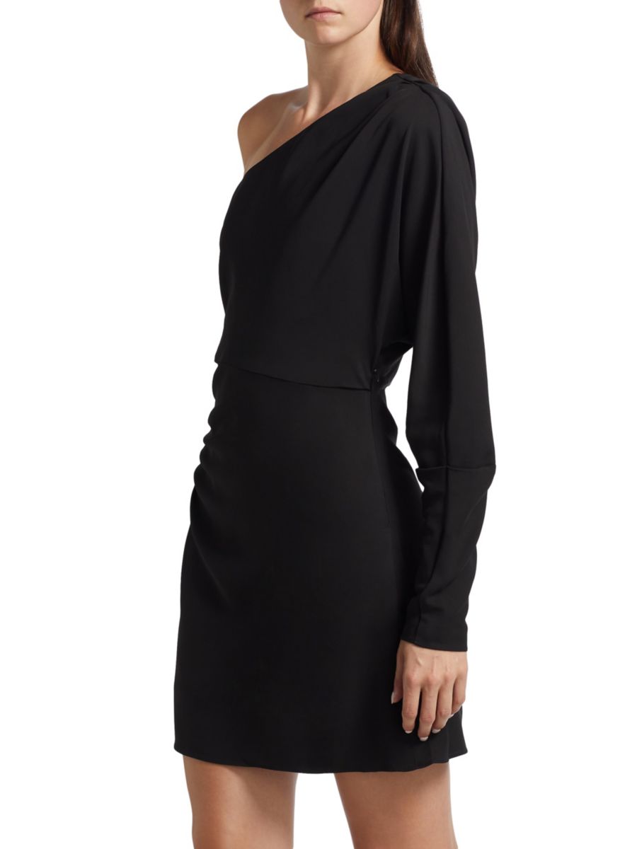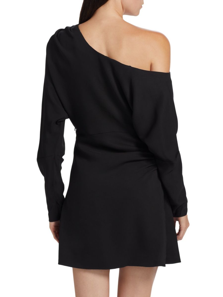 Мини-платье Georgie от Тани Тейлор, выполненное из плотного эластичного крепа, имеет длинные рукава и свободный крой на одно плечо.