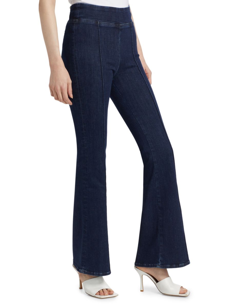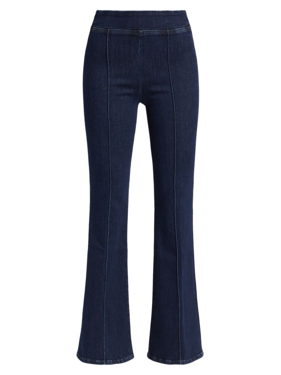 Джинсы Jetset от Frame, выполненные из эластичного денима, отличаются расклешенным силуэтом и эластичным поясом. Защипы подчеркивают высокую посадку.