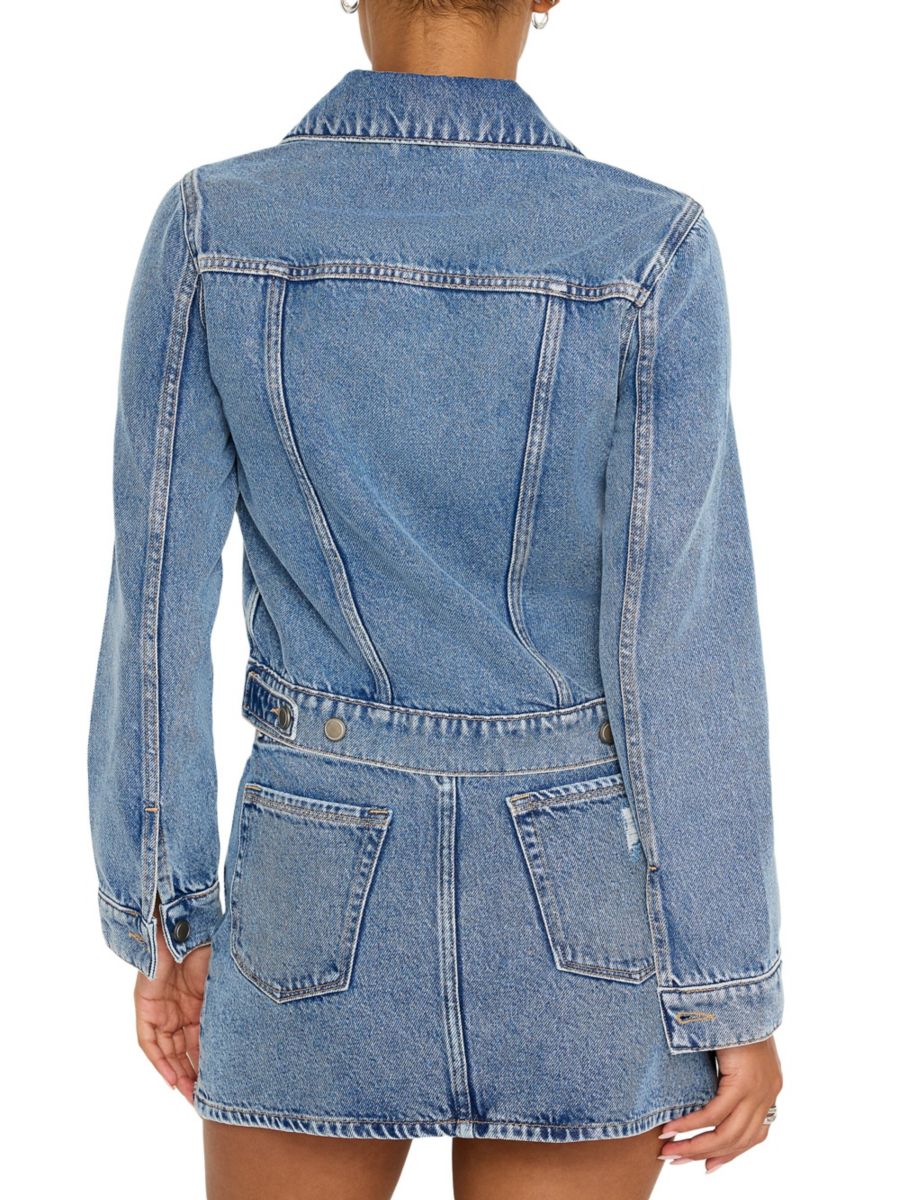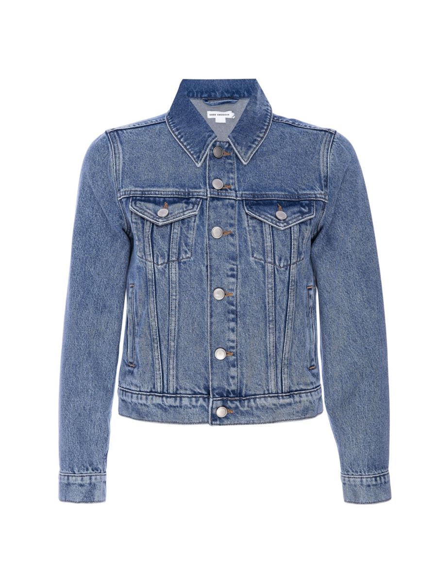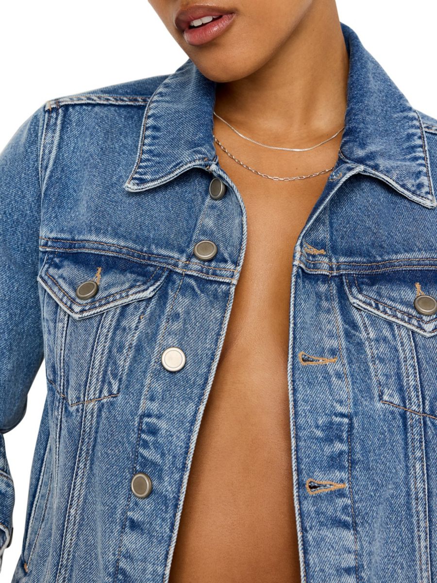 Укороченная куртка Trucker от Good American выполнена из эластичного денима с классическими деталями, такими как манжеты на пуговицах и нагрудные карманы с клапанами.