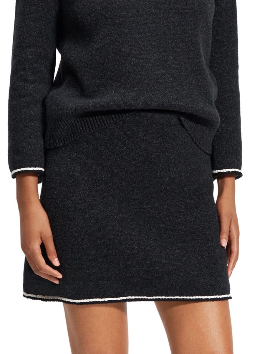 Эта мини-юбка от Theory, связанная из смеси шерсти и кашемира, подчеркивает дизайн войлочного твида.