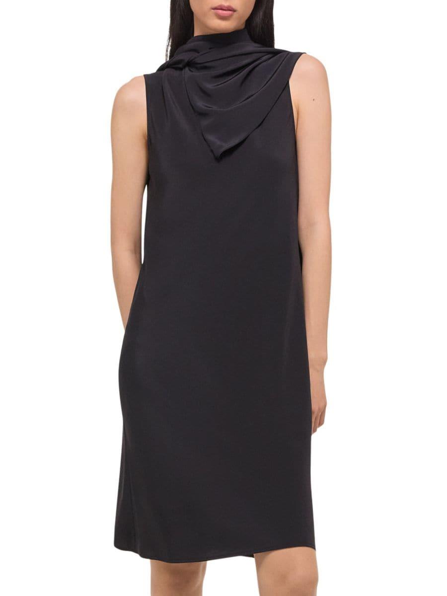 Шелковое платье с драпированным шарфом Helmut Lang, черный