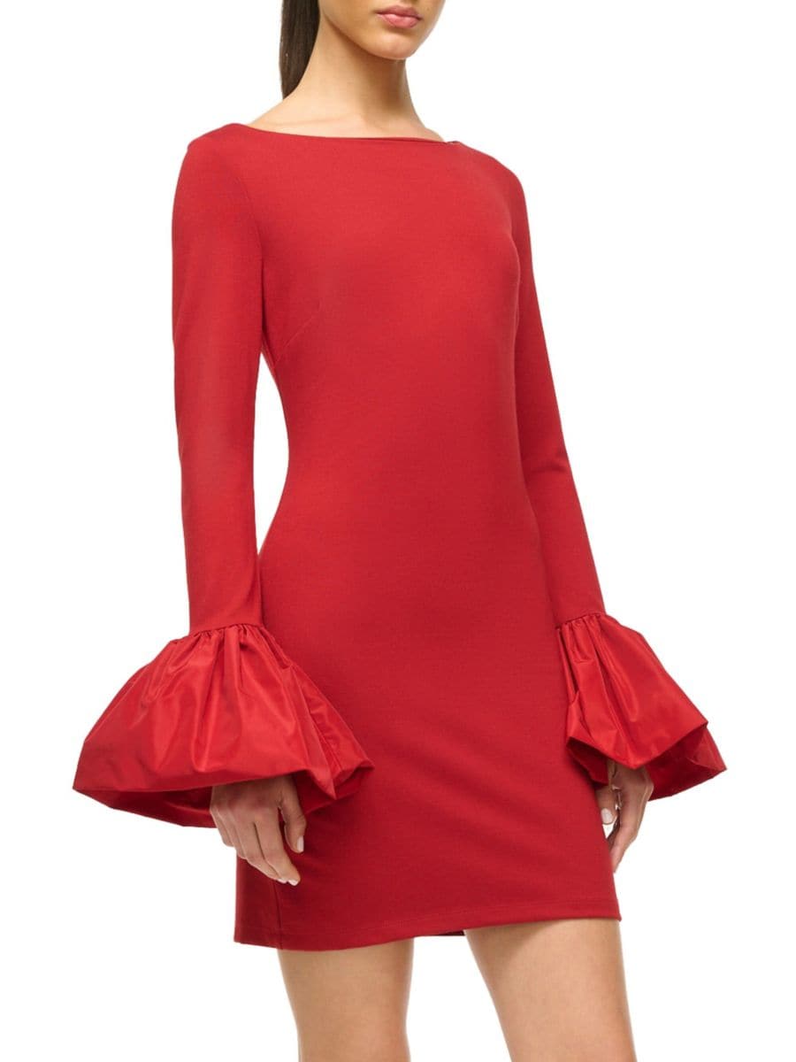 Мини-платье Hawthorne с рукавами-колокольчиками Staud, цвет Rouge 17 077₽