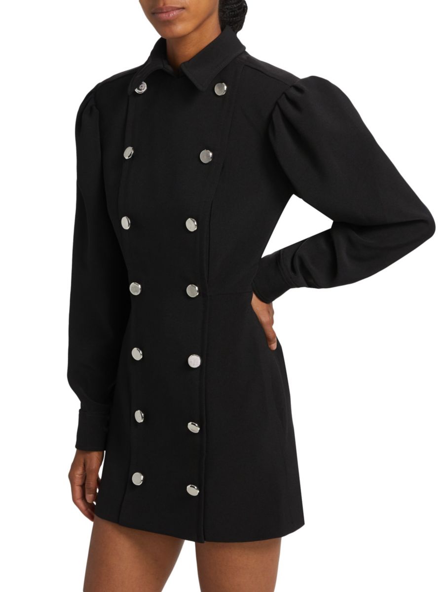 Мини-платье Boge от Ronny Kobo отличается двубортной застежкой на блестящие пуговицы и приталенным силуэтом.