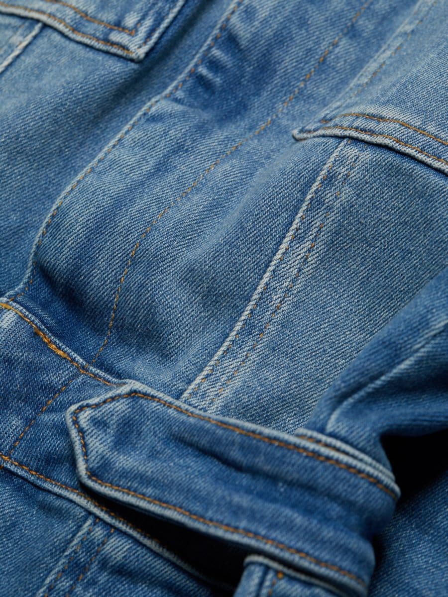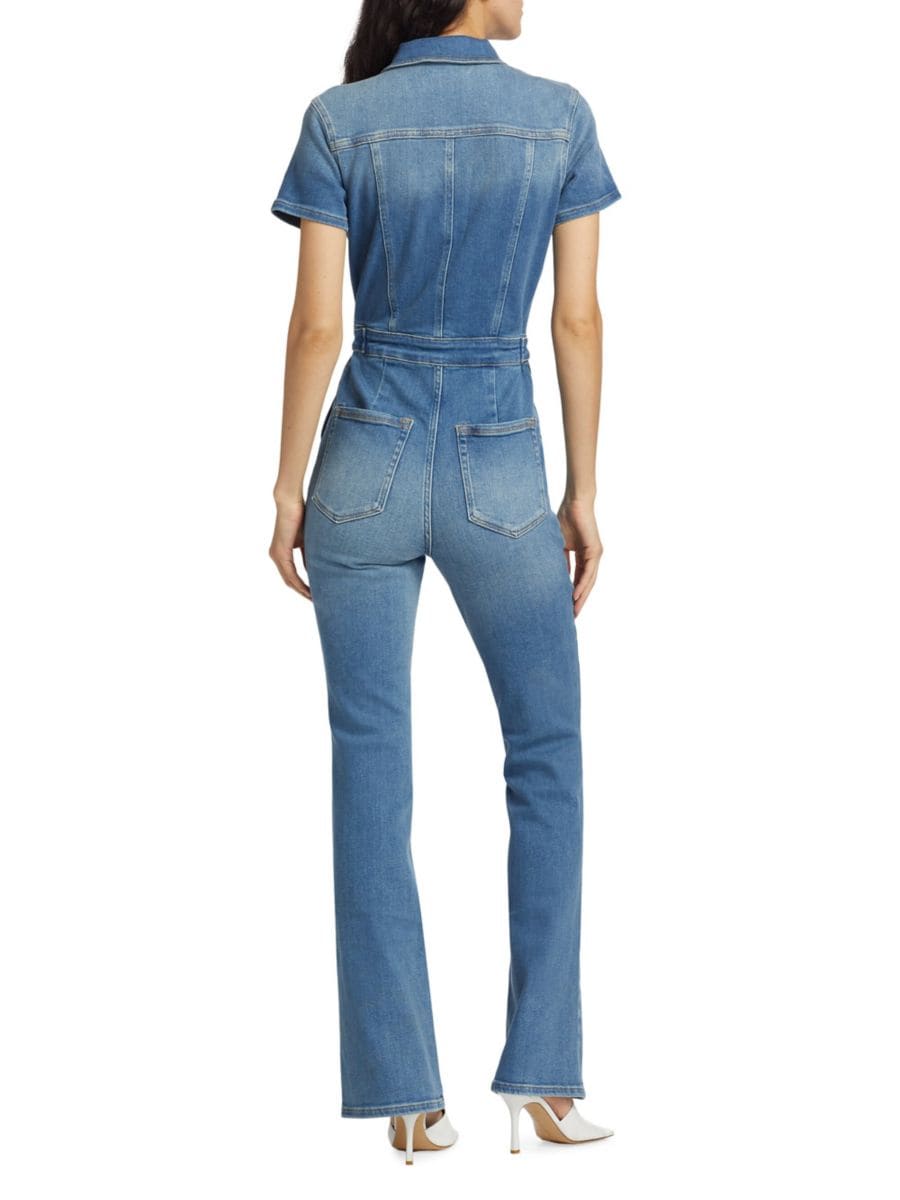 Комбинезон Fit For Success от Good American выполнен из эластичного денима. Приталенный фасон с острым воротником, короткими рукавами и регулируемыми хлястиками на талии для более чёткой формы.